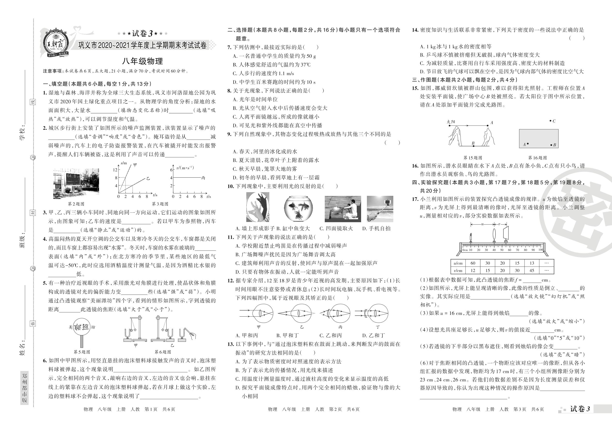 巩义市2020~2021学年度上学期期末考试试卷八年级物理(人教版)【3】
