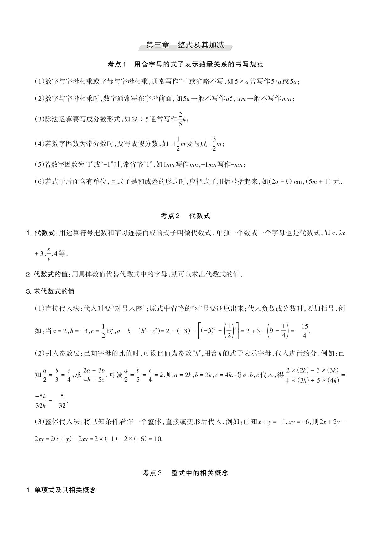 王朝霞期末知识梳理——第三章 整式及其加减七年级上册数学(北师版)【3】