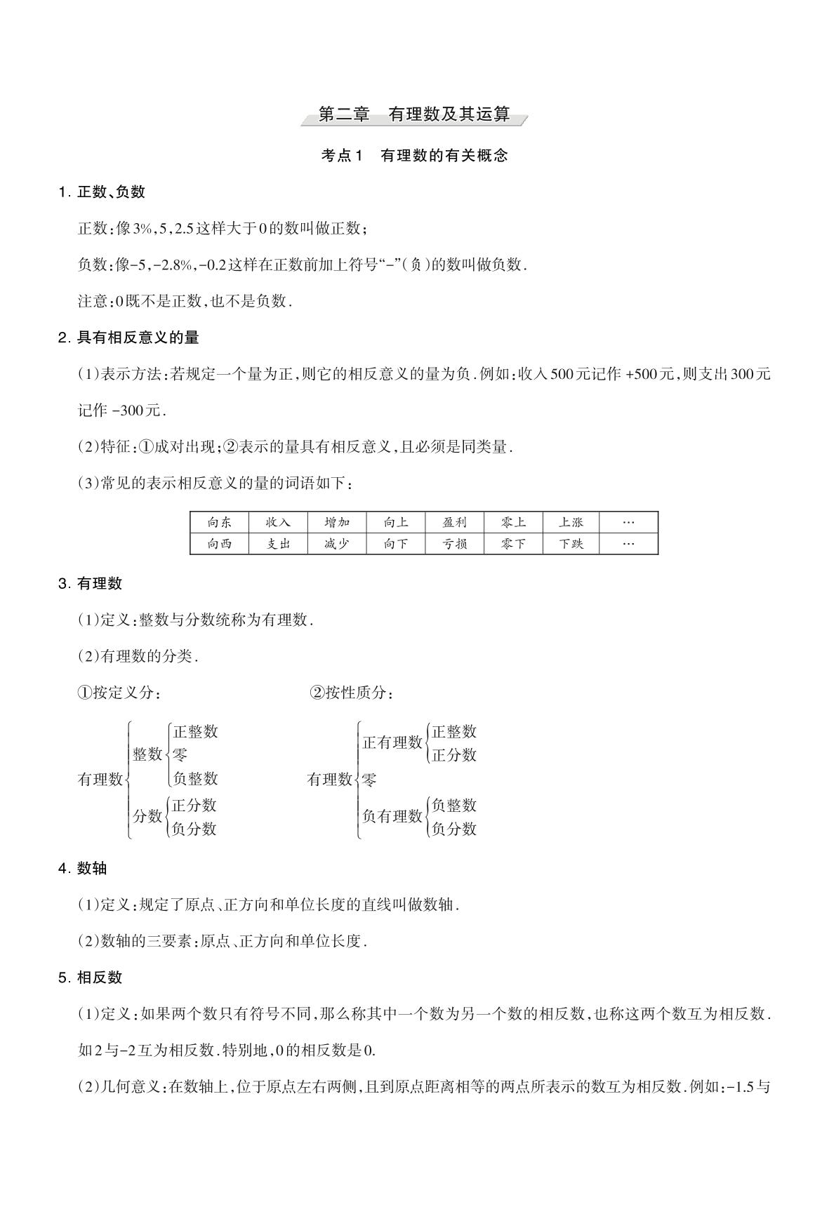 王朝霞期末知识梳理——第二章 有理数及其运算七年级上册数学(北师版)【2】