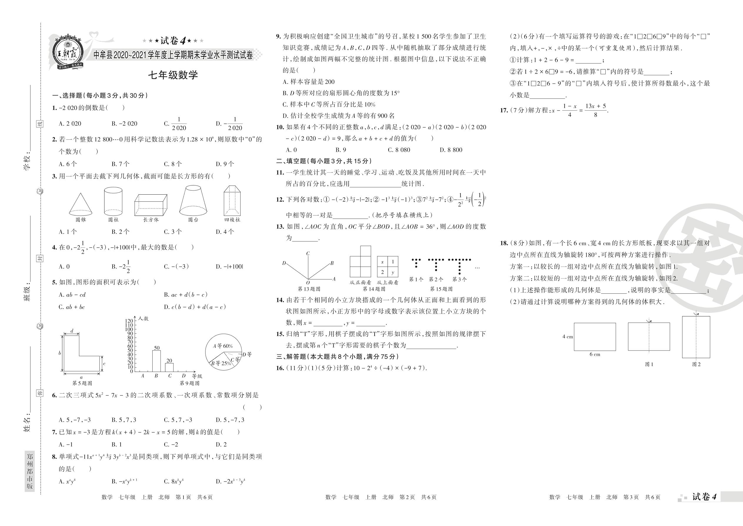 七年级数学北师版上册期末卷