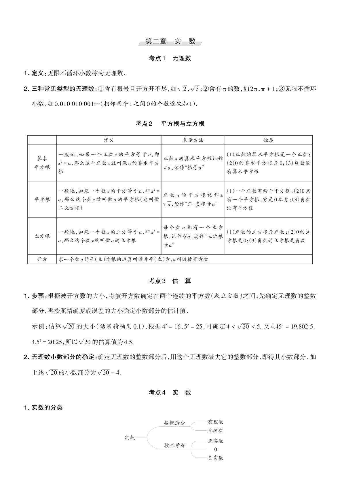 王朝霞期末知识梳理——第二章 实数八年级上册数学(北师版)【2】