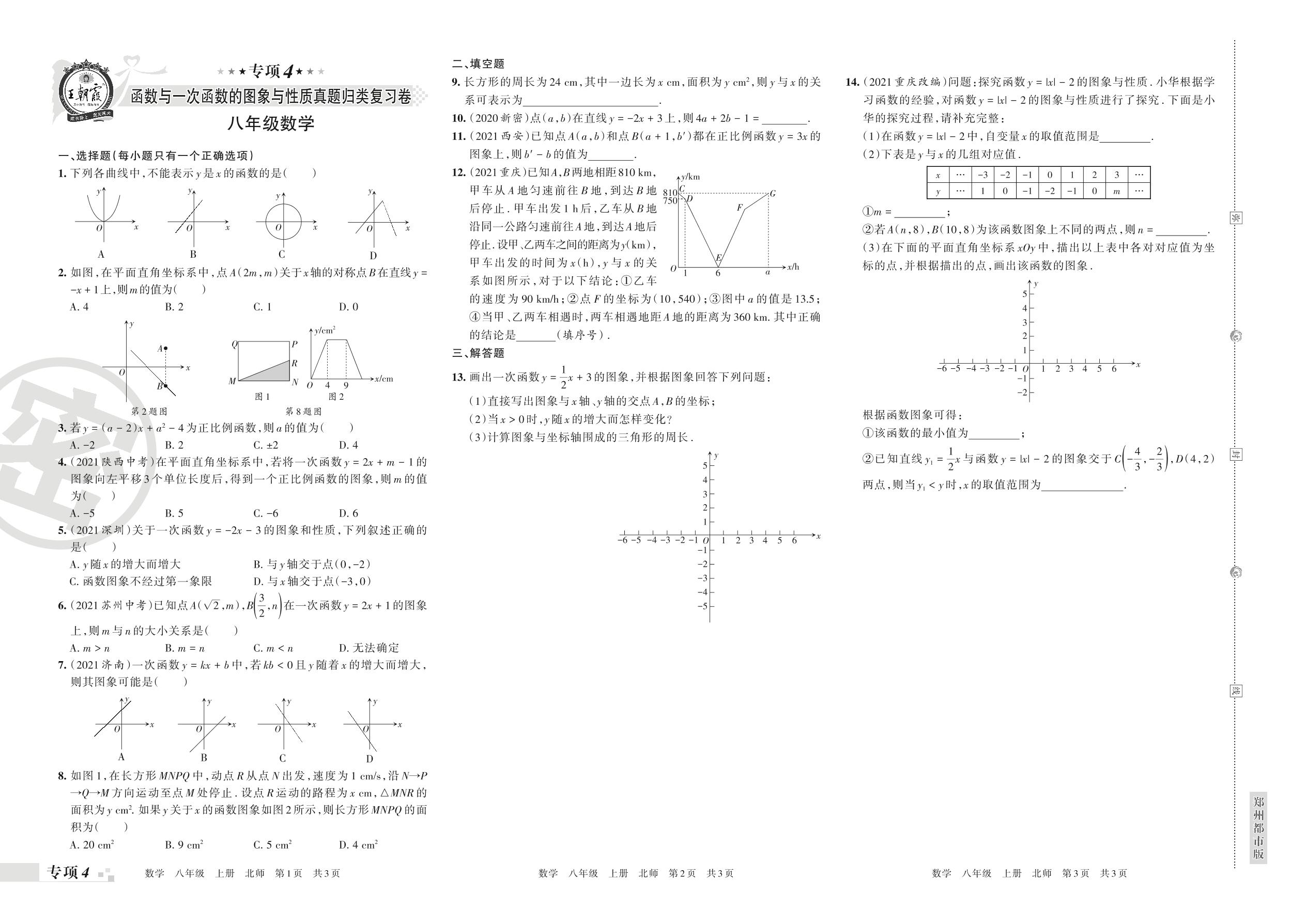 王朝霞期末专项卷——函数与一次函数的图象与性质真题归类复习卷八年级上册数学(北师版)【4】