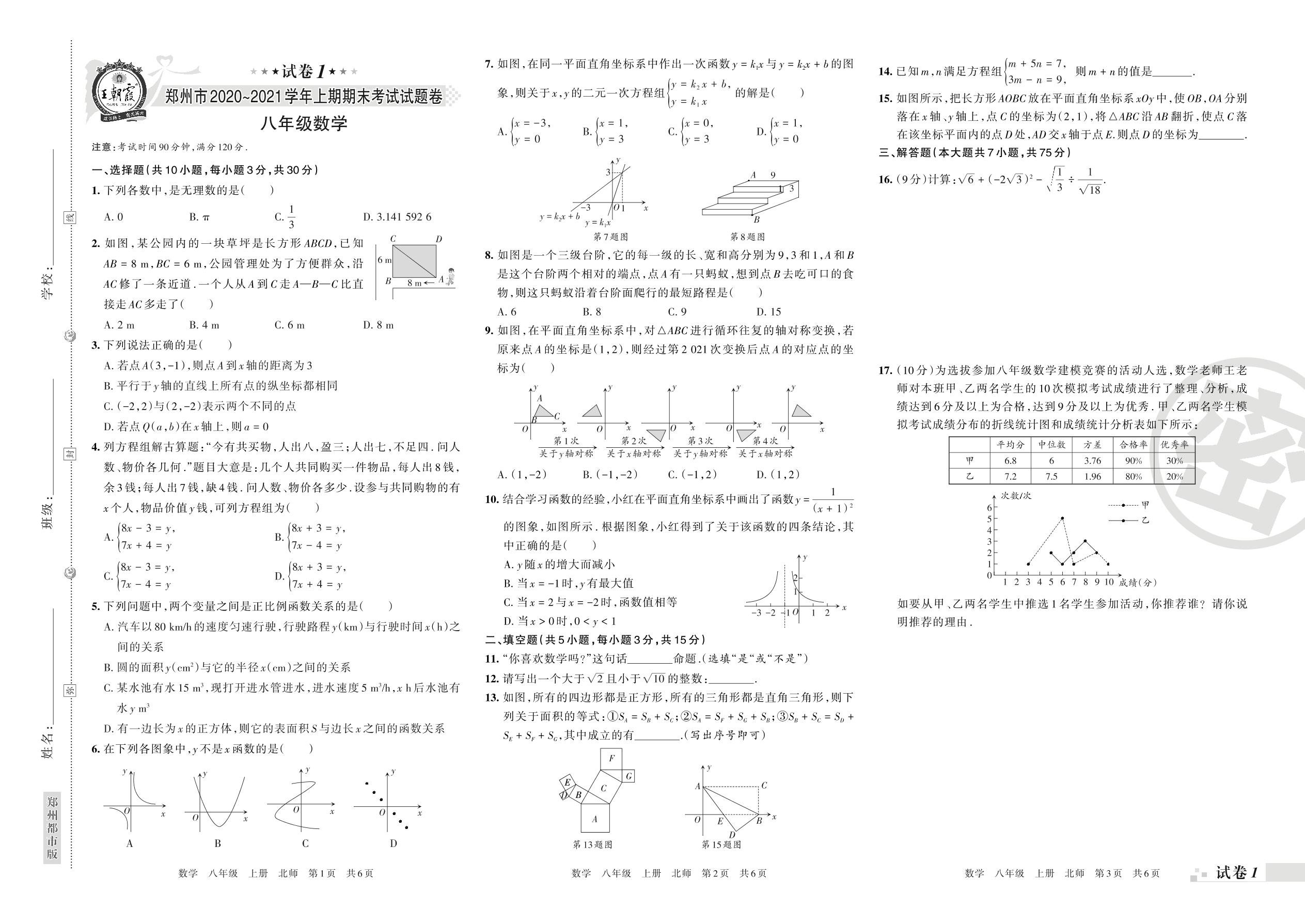 郑州市2020~2021学年上期期末考试试题卷八年级数学(北师版)【1】