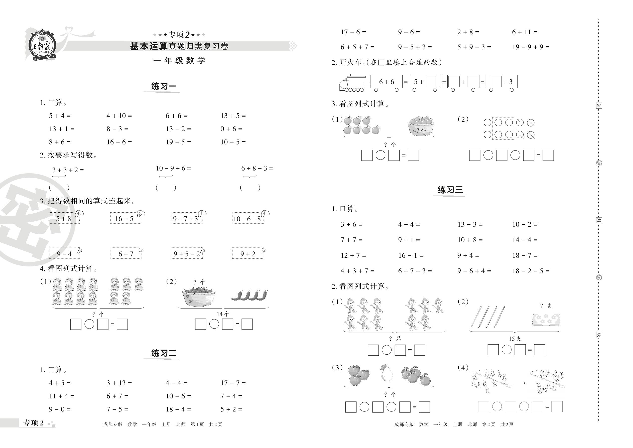 王朝霞期末专项卷——基本运算真题归类复习卷一年级上册数学(北师版)_R211120150458350【2】