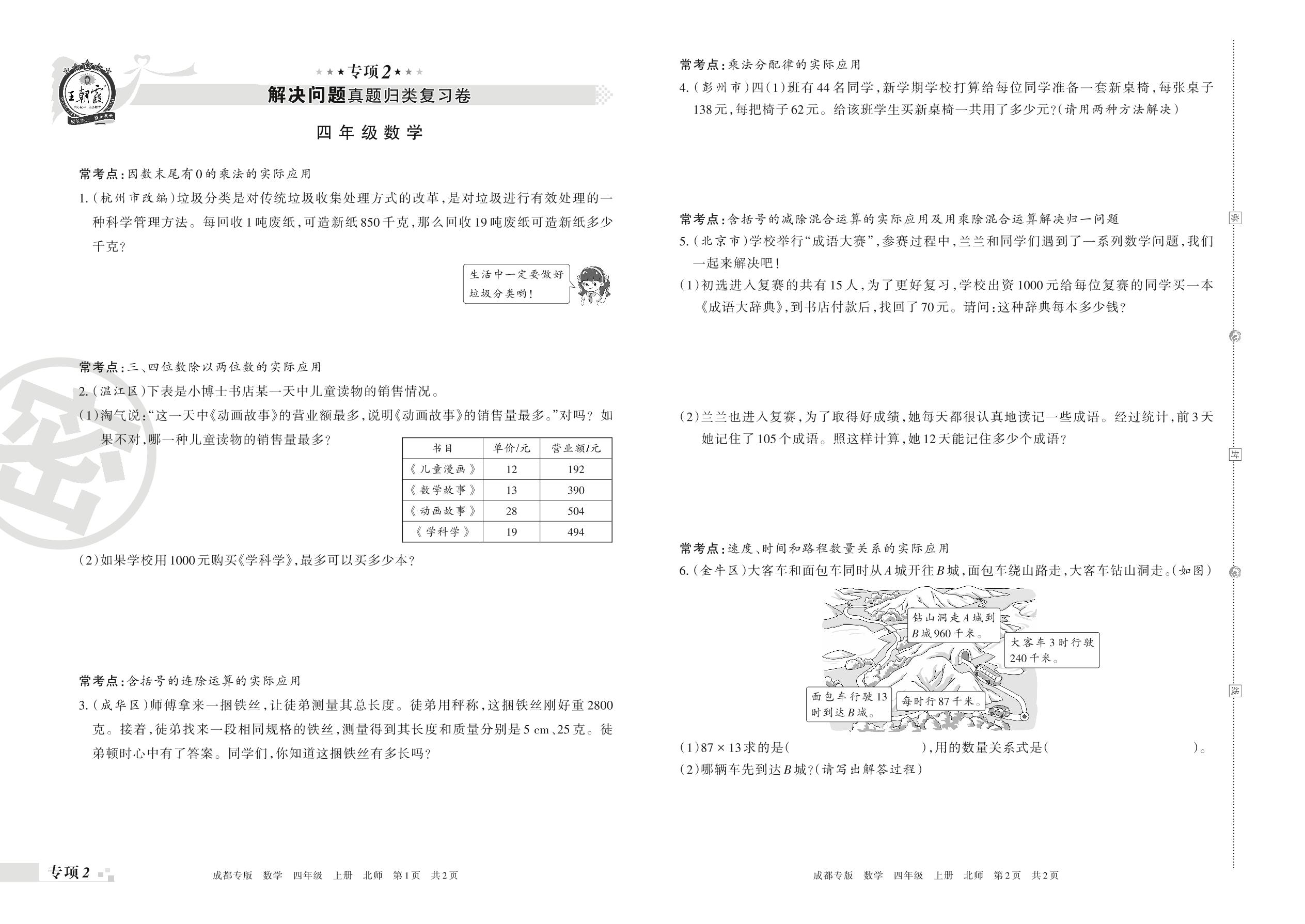 王朝霞期末专项卷——解决问题真题归类复习卷四年级上册数学(北师版)【2】