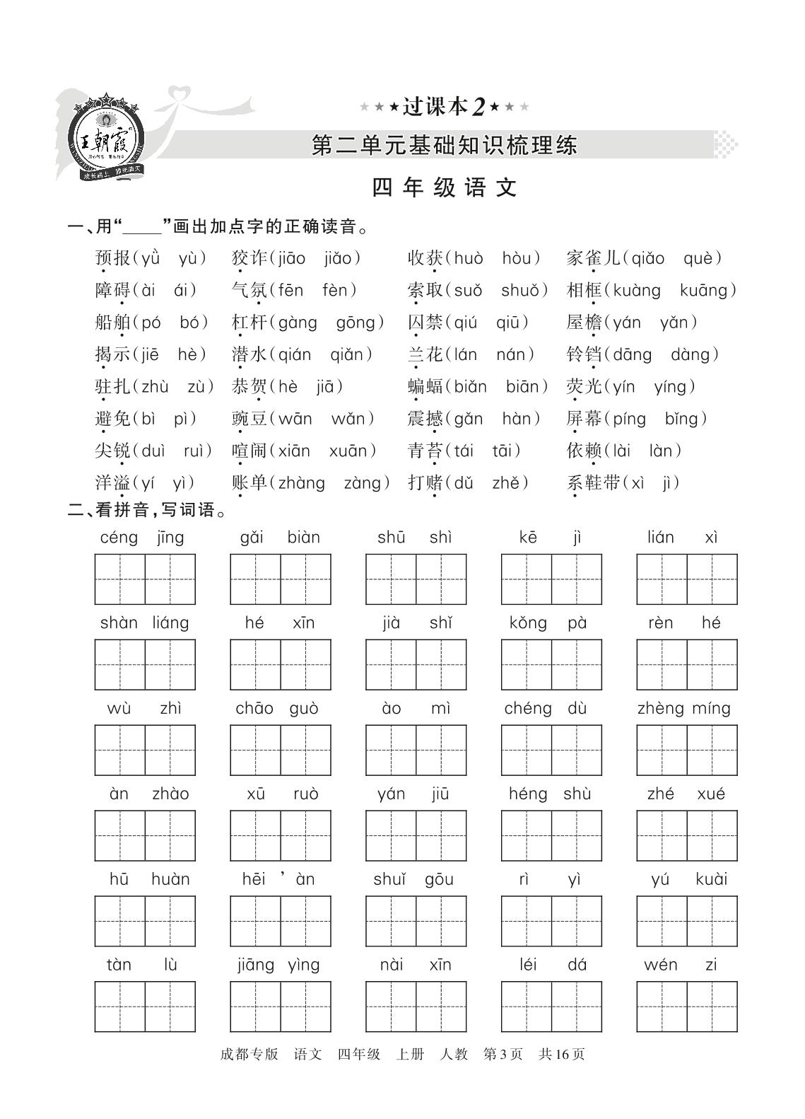 王朝霞期末过课本——第二单元基础知识梳理练四年级上册语文(人教版)_R211120153858117【2】