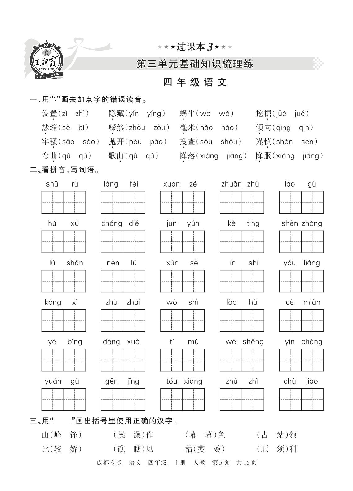 王朝霞期末过课本——第三单元基础知识梳理练四年级上册语文(人教版)_R211120153858209【3】