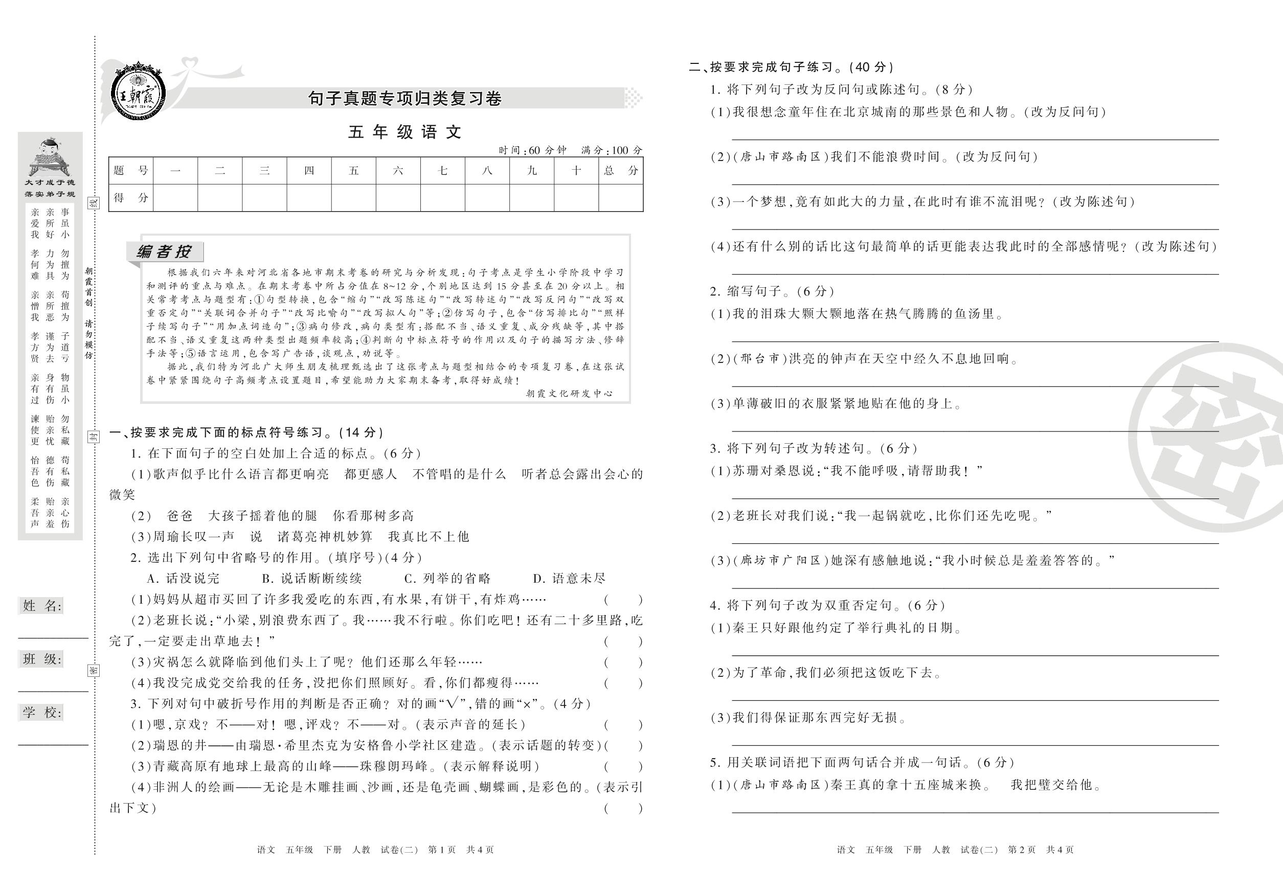 王朝霞期末专项卷五年级下册语文(人教版)_R210801203337【2】