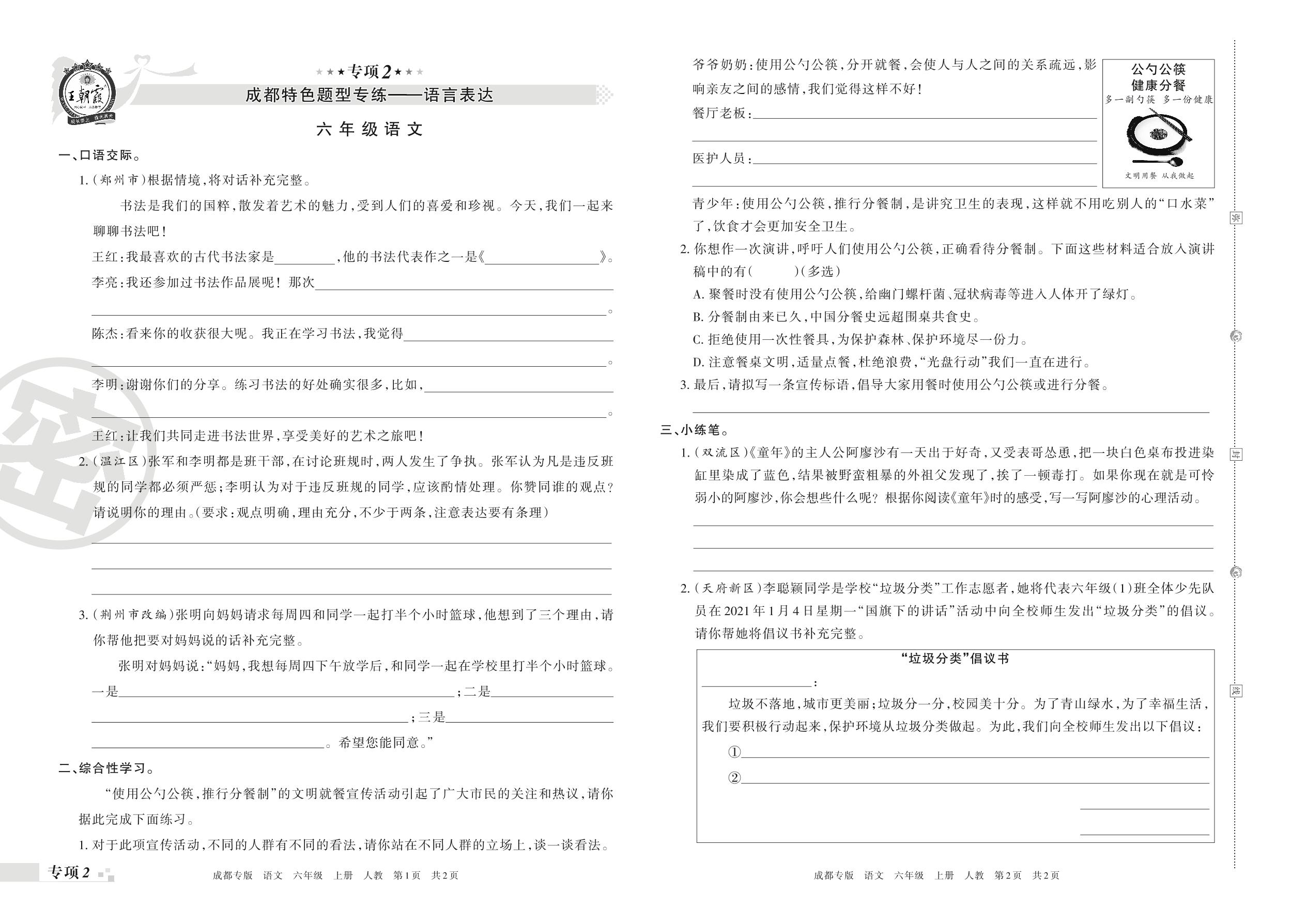 王朝霞期末专项卷——成都特色题型专练:语言表达六年级上册语文(人教版)【2】