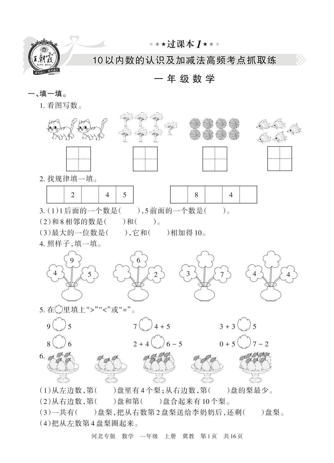 王朝霞期末过课本——10以内数的认识及加减法高频考点抓取练一年级上册数学(冀教版)【1】