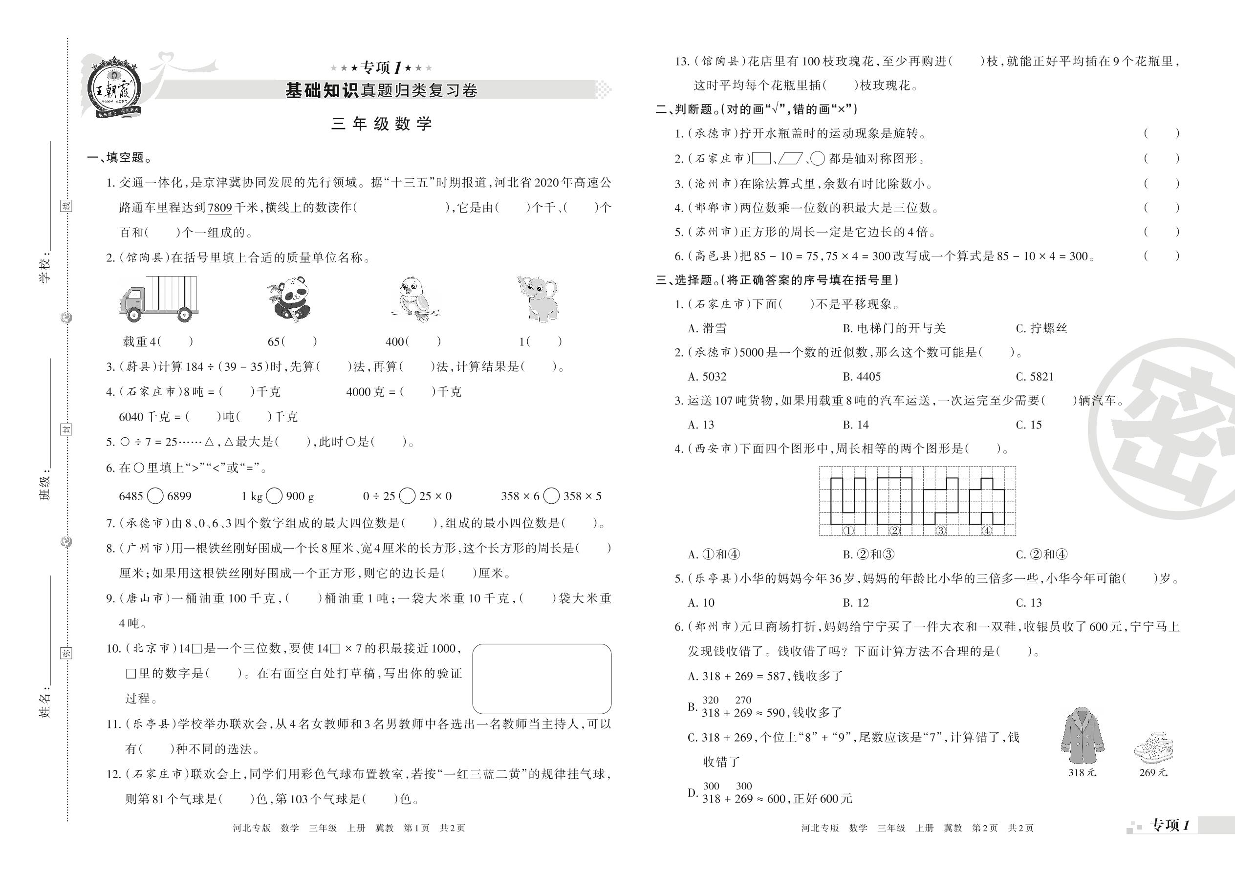 王朝霞期末专项卷——基础知识真题归类复习卷三年级上册数学(冀教版)【1】