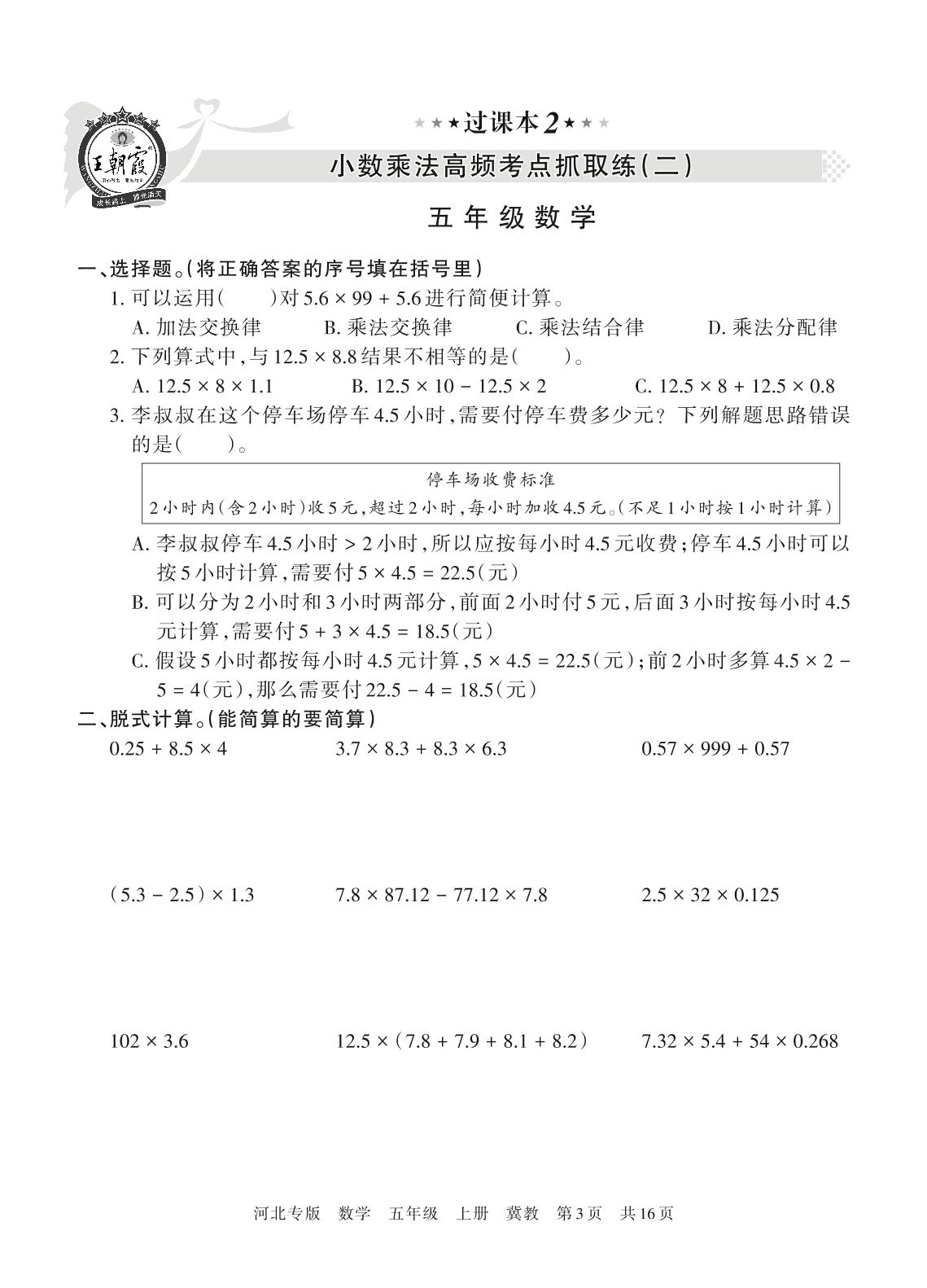 王朝霞期末过课本——小数乘法高频考点抓取练(二)五年级上册数学(冀教版)【2】