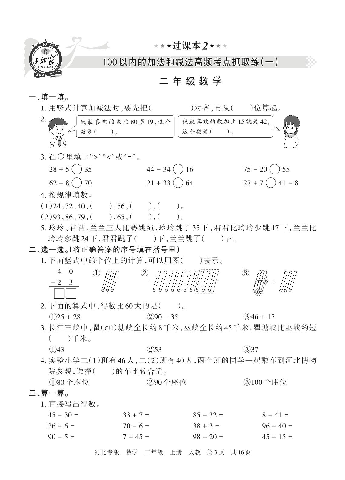 王朝霞期末过课本——100以内的加法和减法高频考点抓取练(一)二年级上册数学(人教版)_R211122104438305【2】