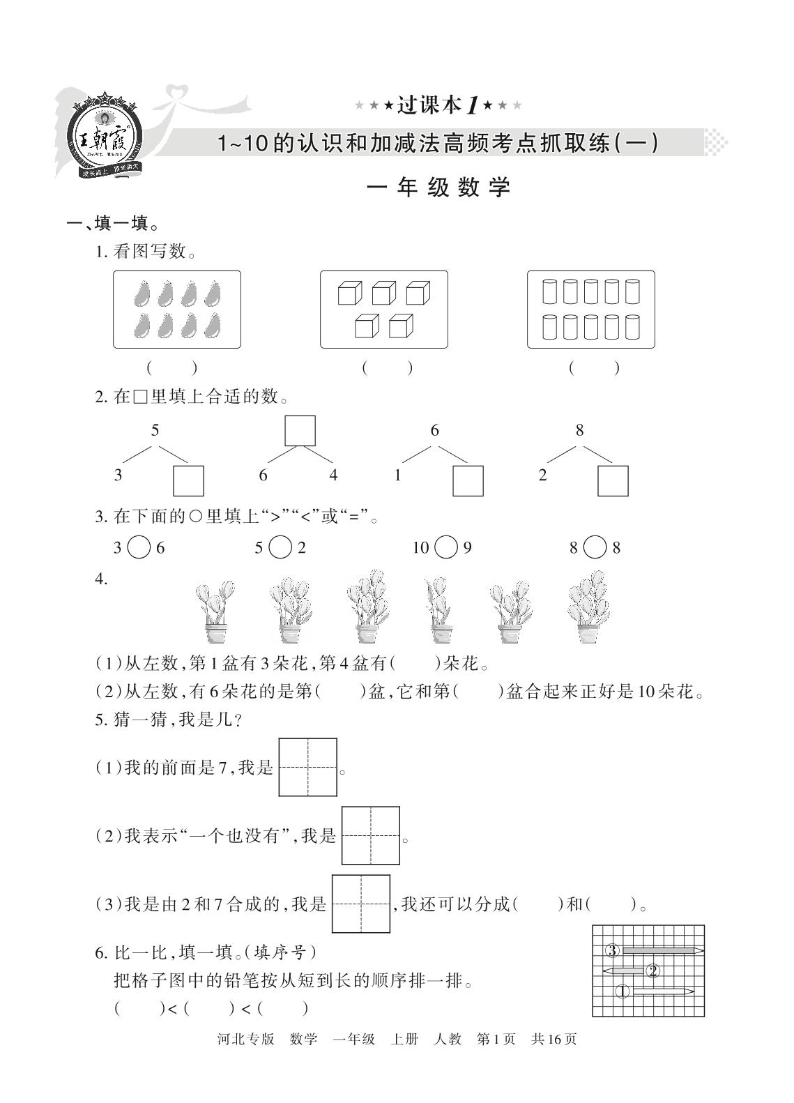 王朝霞期末过课本——1~10的认识和加减法高频考点抓取练(一)一年级上册数学(人教版)_R211123091225239【1】