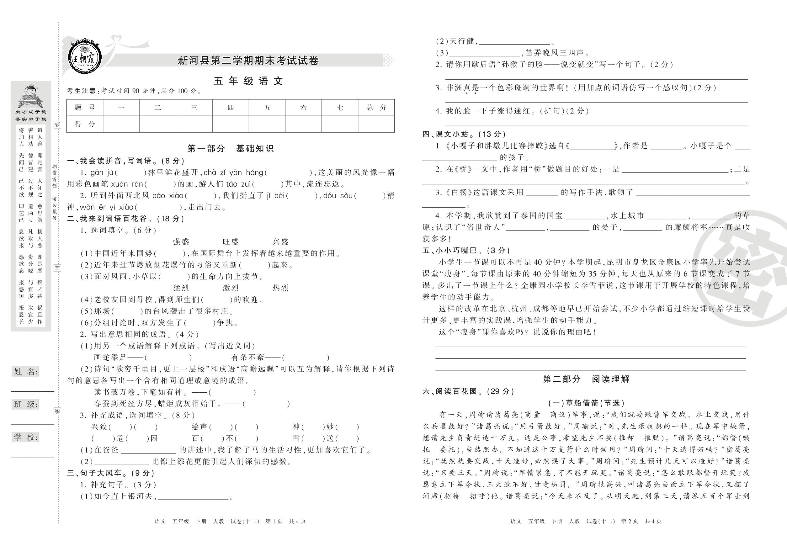 2015-2016学年第二学期邢台市新河县五年级语文试卷(人教版)【12】