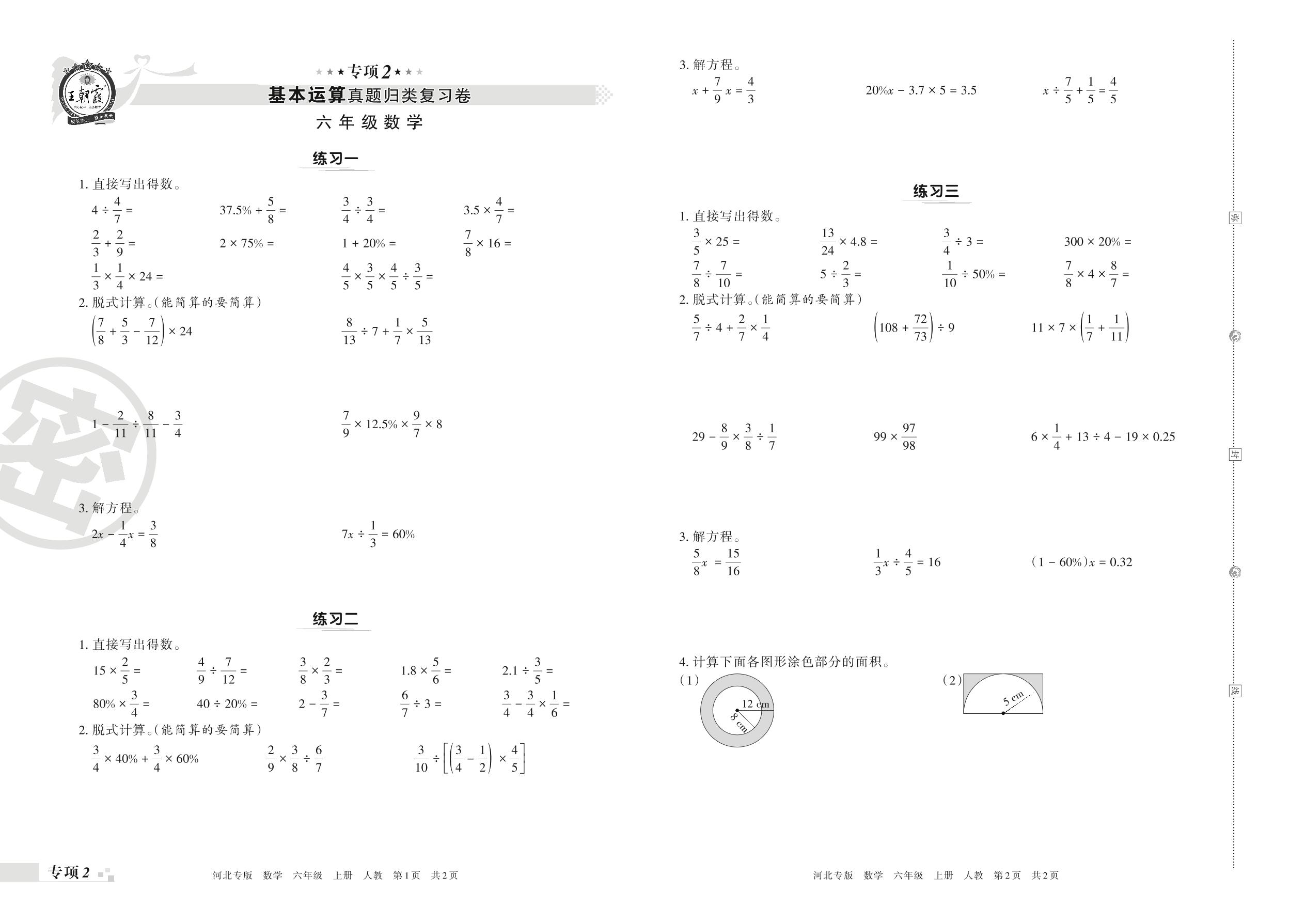 王朝霞期末专项卷——基本运算真题归类复习卷六年级上册数学(人教版)_R211123092616973【2】