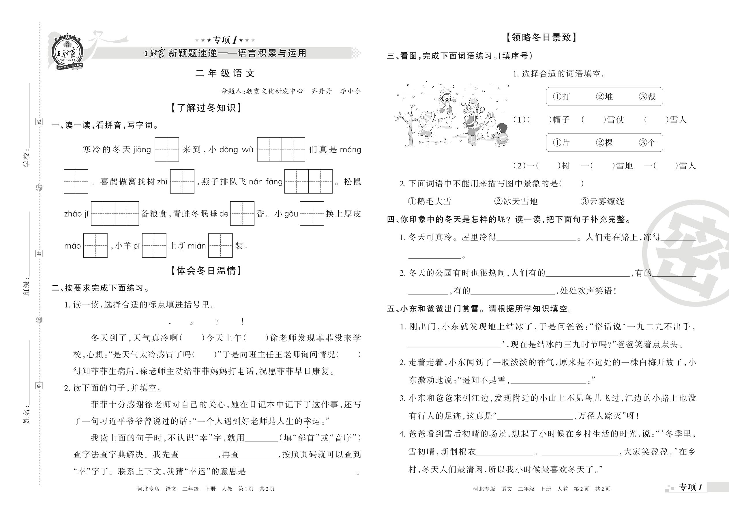 王朝霞期末专项卷——新颖题速递:语言积累与运用二年级上册语文(人教版)_R211123093041084【1】