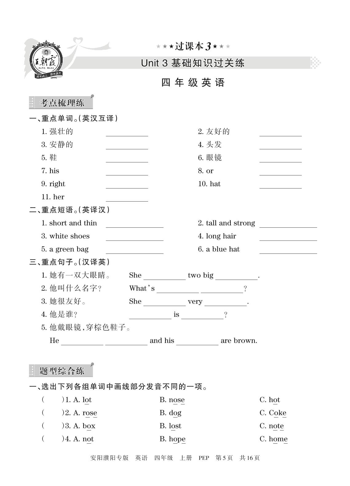 王朝霞期末过课本——Unit 3基础知识过关练四年级上册英语(人教PEP版)_R211123150646371【3】