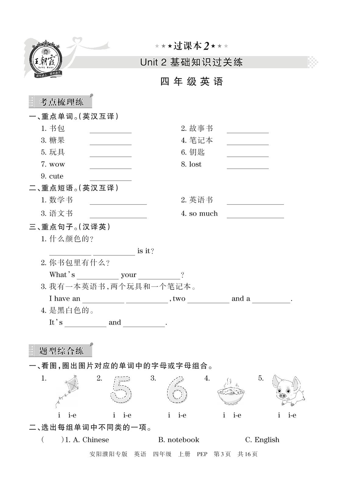 王朝霞期末过课本——Unit 2基础知识过关练四年级上册英语(人教PEP版)_R211123150646473【2】