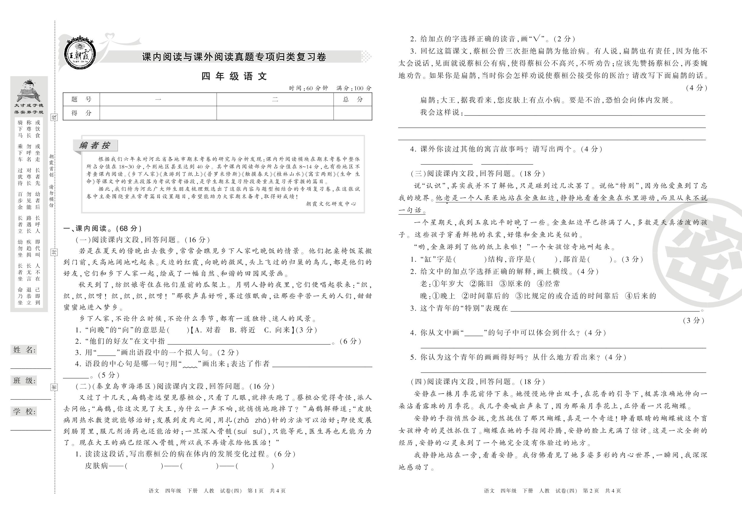 王朝霞期末专项卷四年级下册语文(人教版)_R210801203534【4】