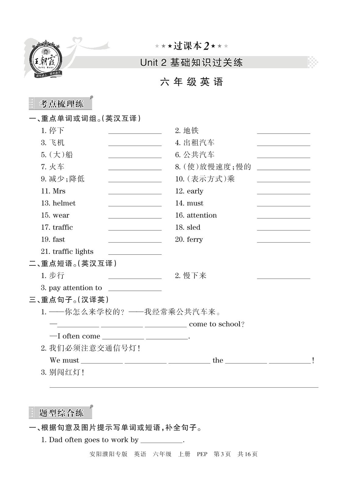 王朝霞期末过课本——Unit 2基础知识过关练六年级上册英语(人教PEP版)_R211123151345338【2】