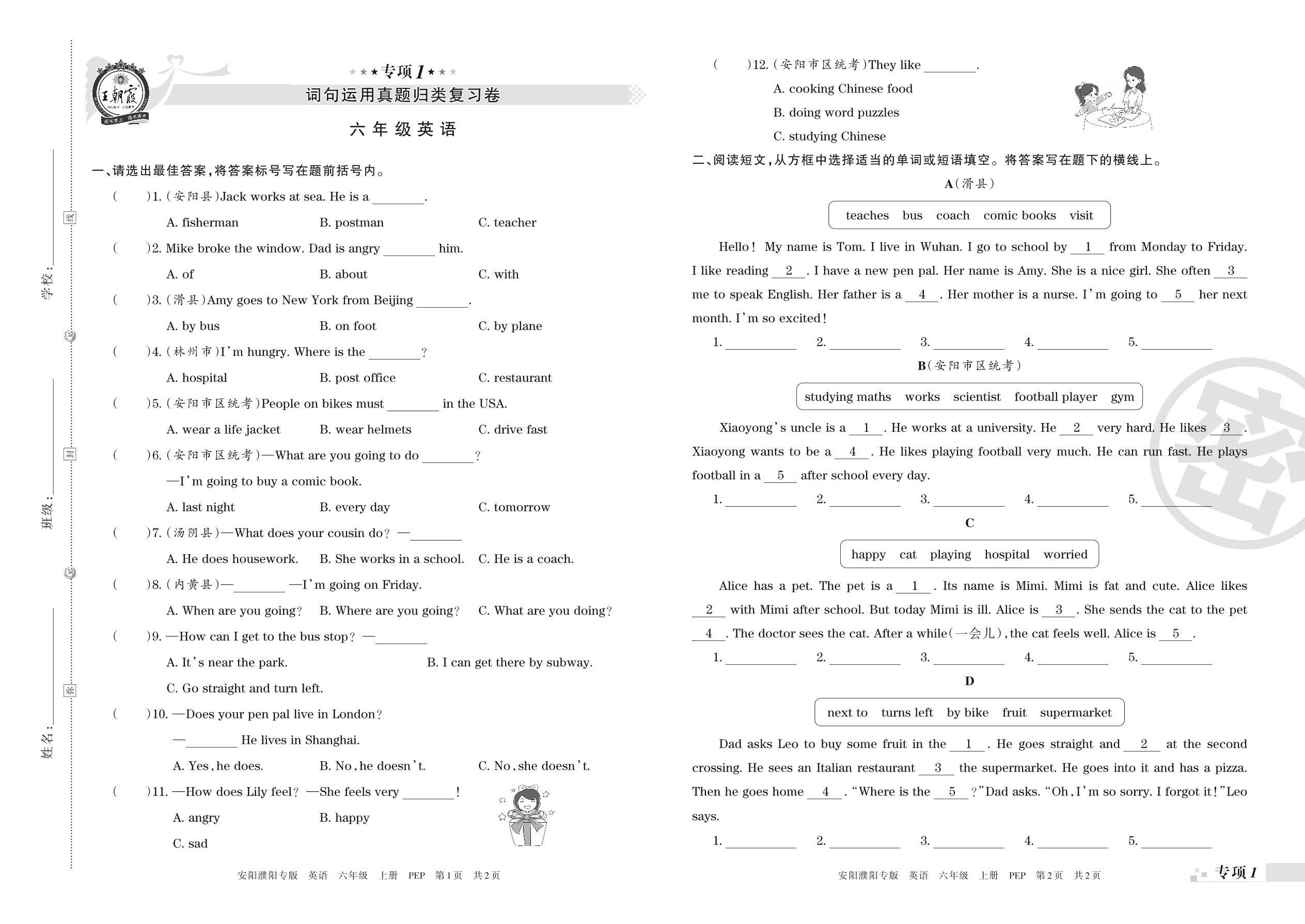 王朝霞期末专项卷——词句运用真题归类复习卷六年级上册英语(人教PEP版)【1】