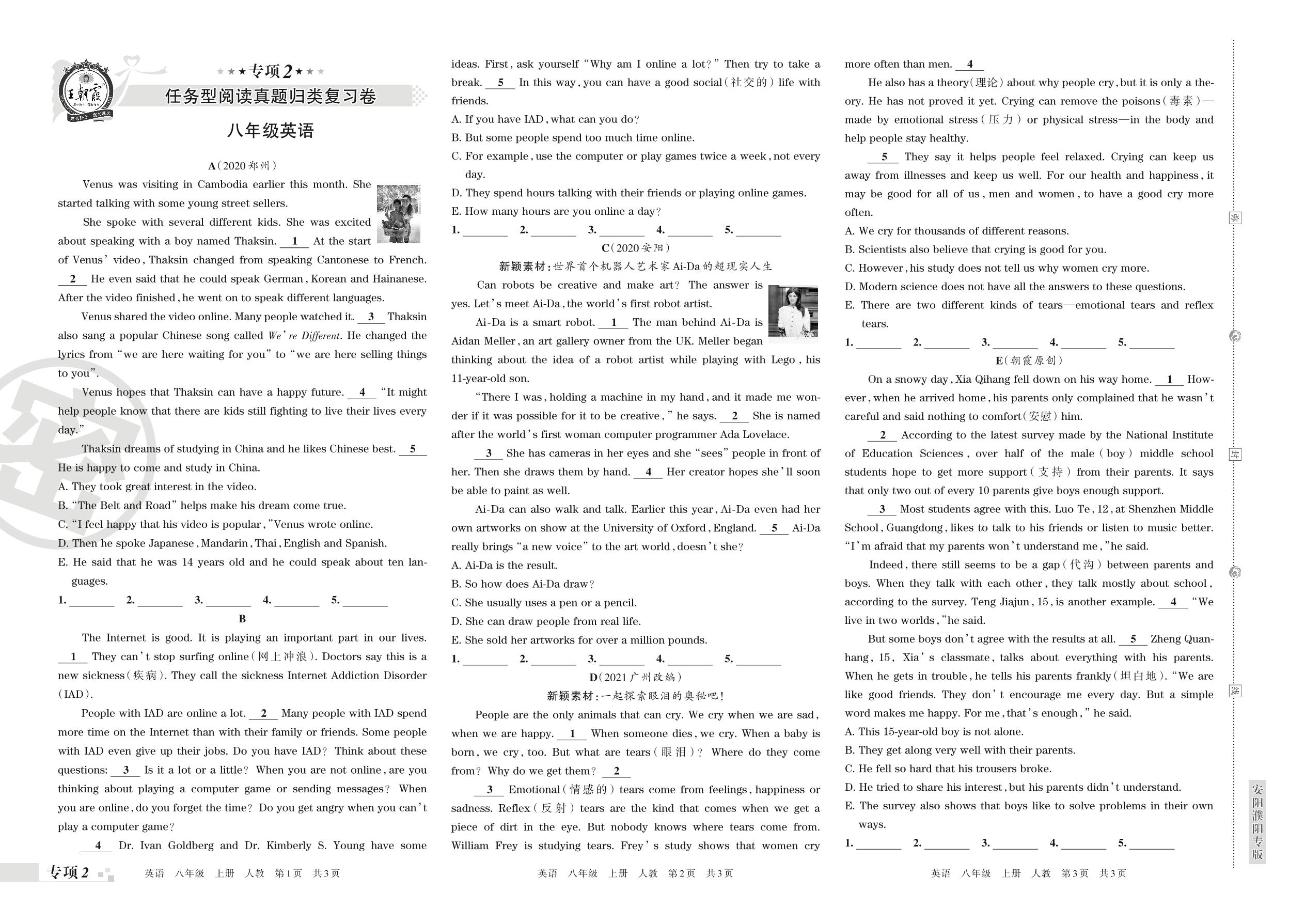 王朝霞期末专项卷——任务型阅读真题归类复习卷八年级上册英语(人教版)_R211123153325075【2】