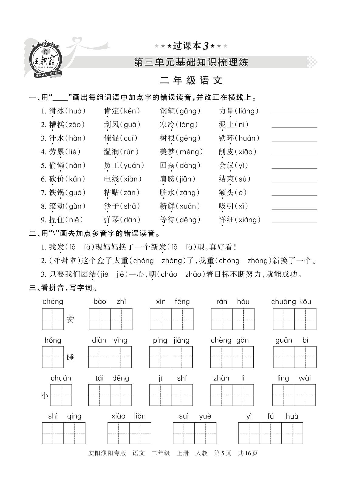 王朝霞期末过课本——第三单元基础知识梳理练二年级上册语文(人教版)_R211123154239050【3】