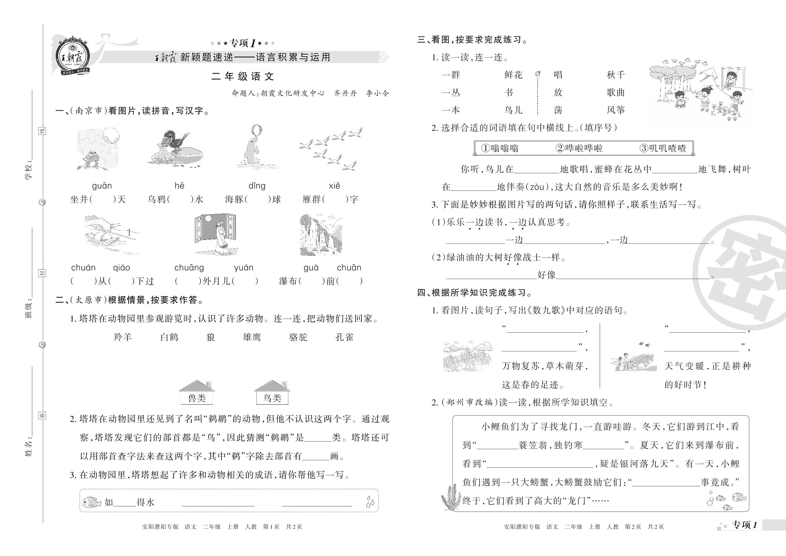 王朝霞期末专项卷——新颖题速递:语言积累与运用二年级上册语文(人教版)_R211123154240178【1】