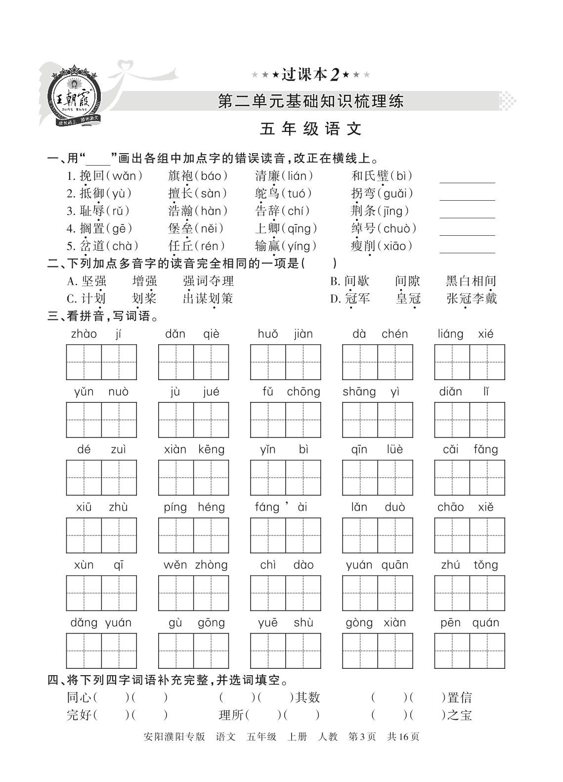 王朝霞期末过课本——第二单元基础知识梳理练五年级上册语文(人教版)_R211123155556543【2】