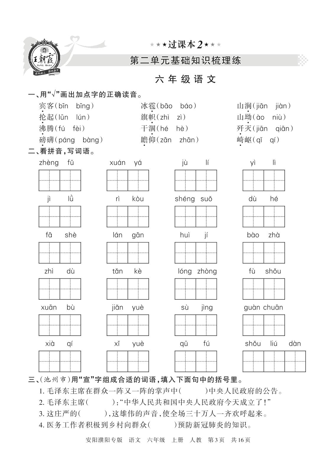 王朝霞期末过课本——第二单元基础知识梳理练六年级上册语文(人教版)_R211123155906150【2】