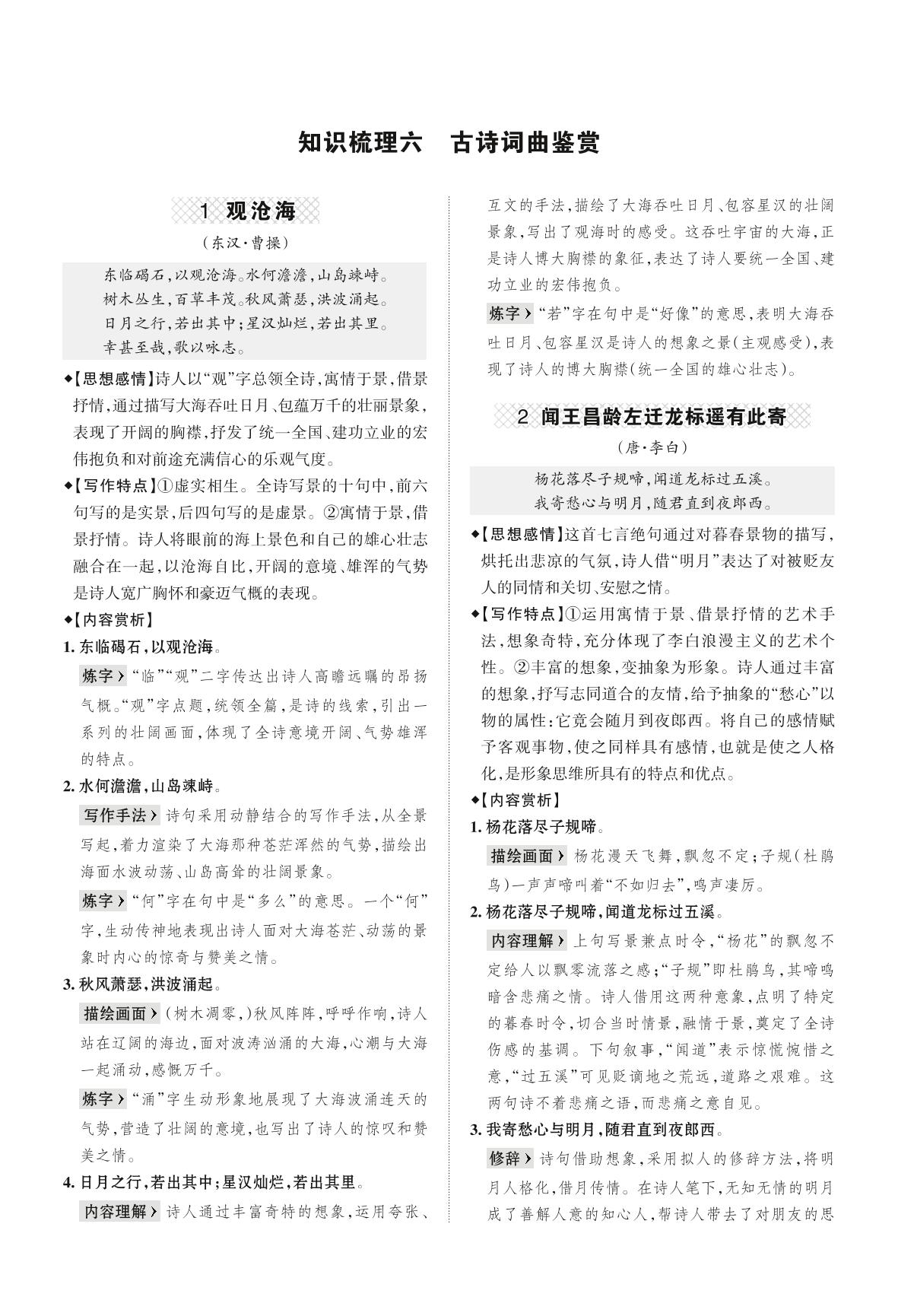 王朝霞期末过课本——知识梳理六 古诗词曲鉴赏七年级上册语文(人教版)【6】
