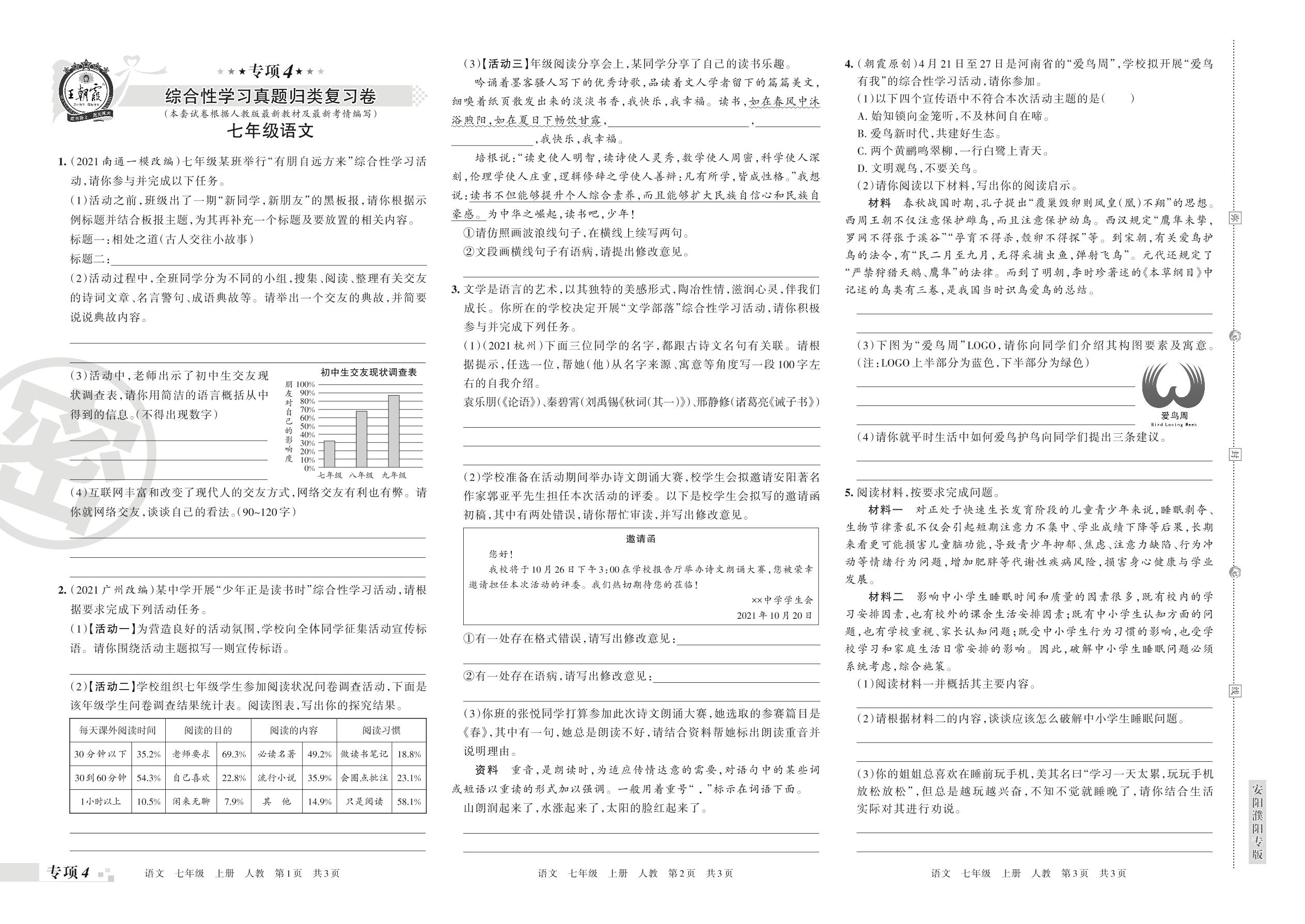 王朝霞期末专项卷——综合性学习真题归类复习卷七年级上册语文(人教版)_R211123161431594【4】