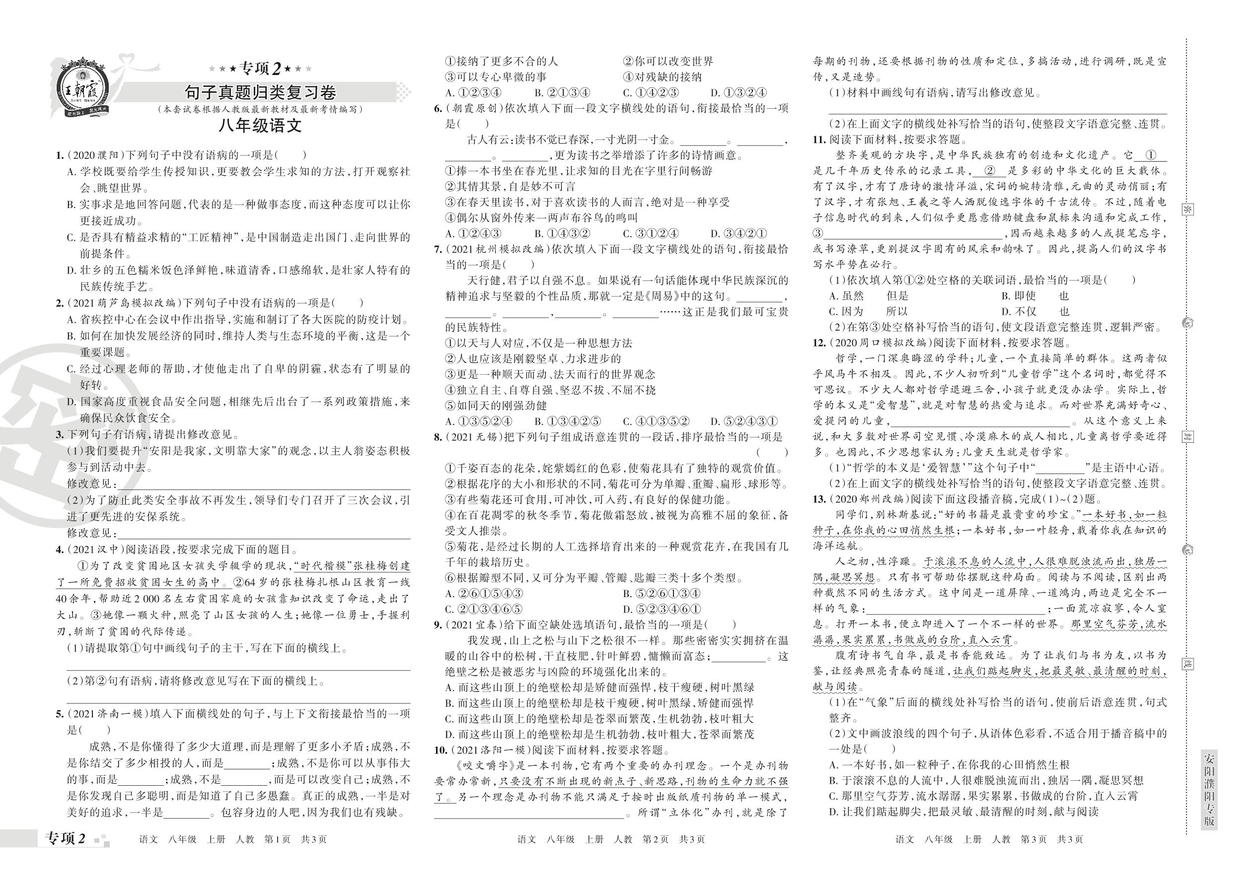 王朝霞期末专项卷——句子真题归类复习卷八年级上册语文(人教版)_R211123161757698【2】