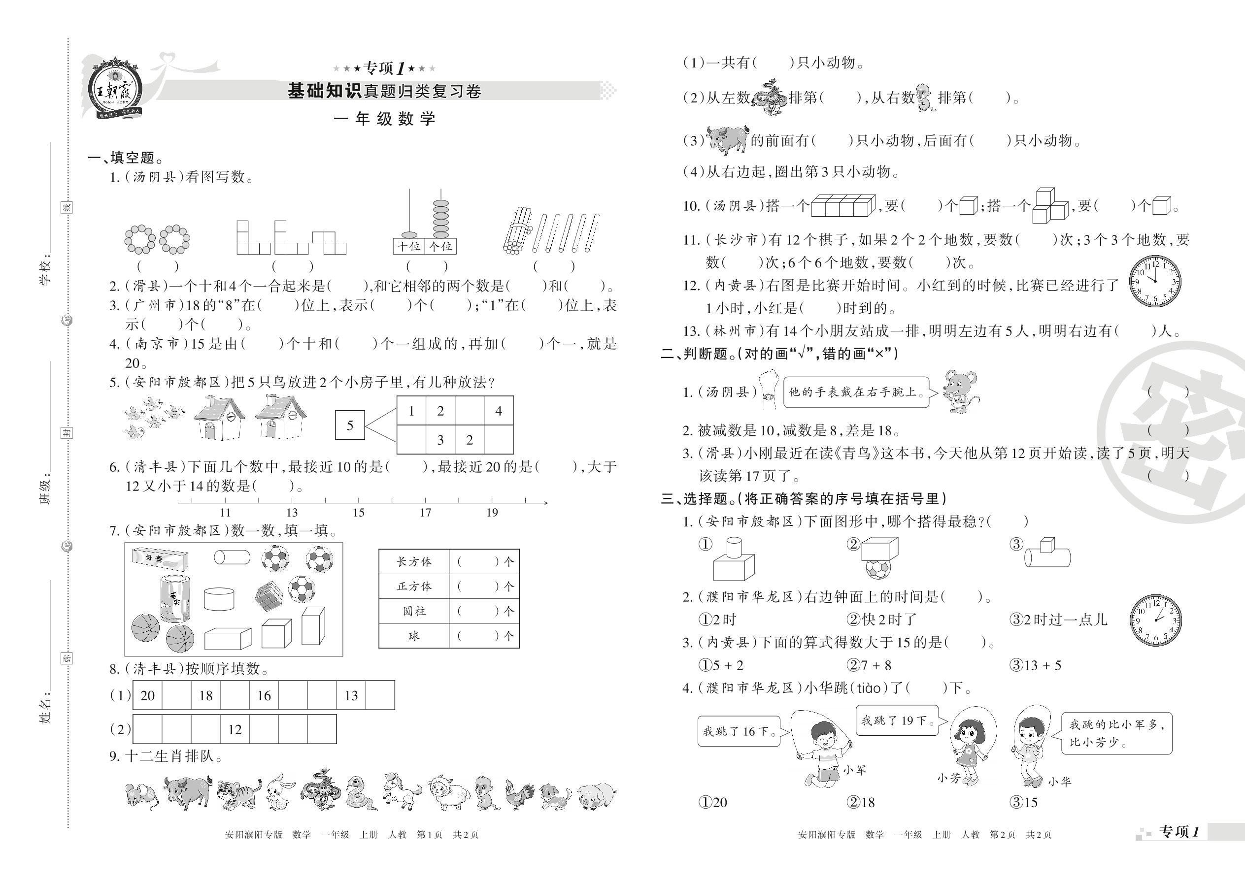 王朝霞期末专项卷——基础知识真题归类复习卷一年级上册数学(人教版)_R211124095551853【1】
