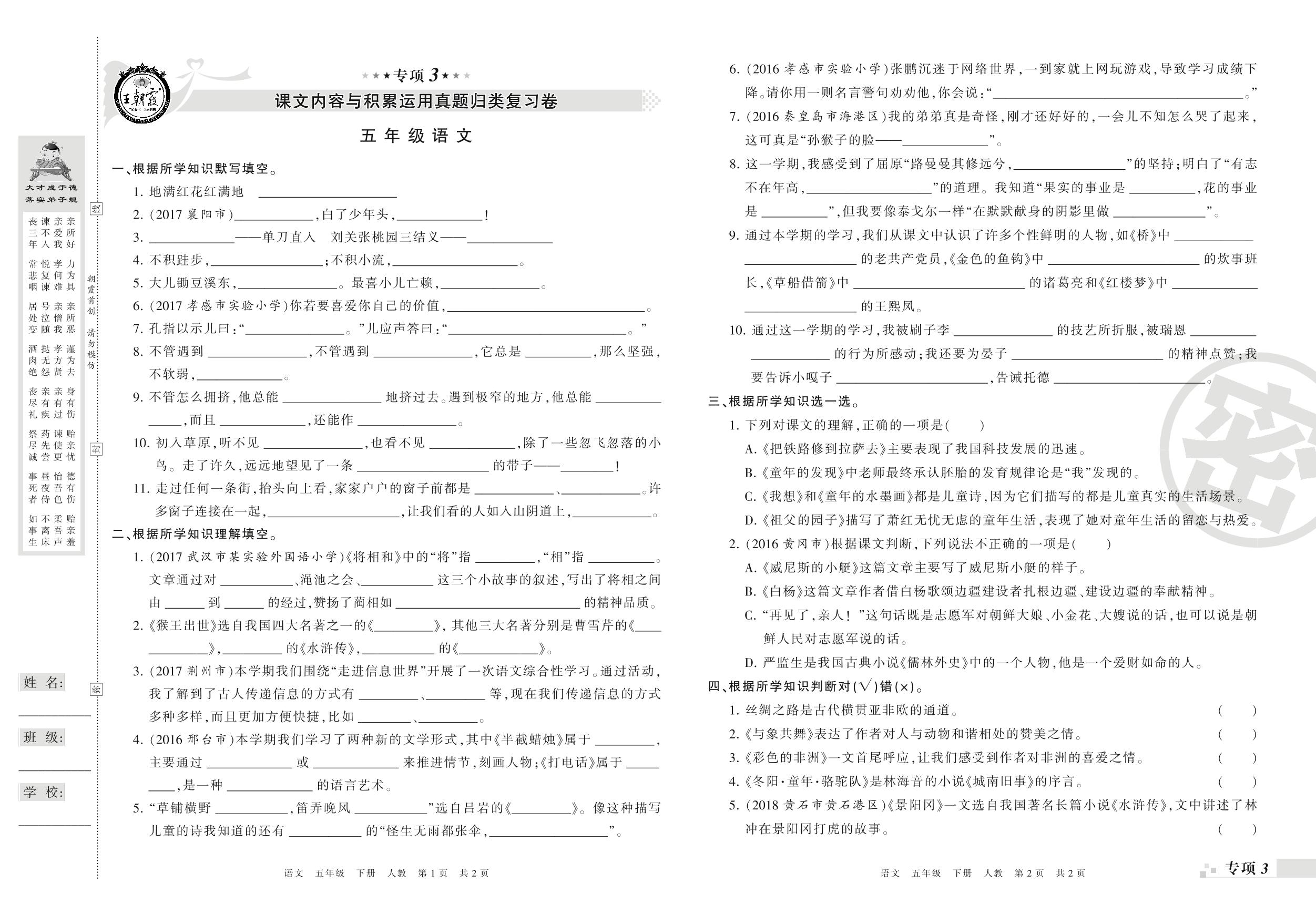 王朝霞期末专项卷——课文内容与积累运用、课内阅读与写作真题归类复习五年级下册语文(人教版)_R210801203706【0】