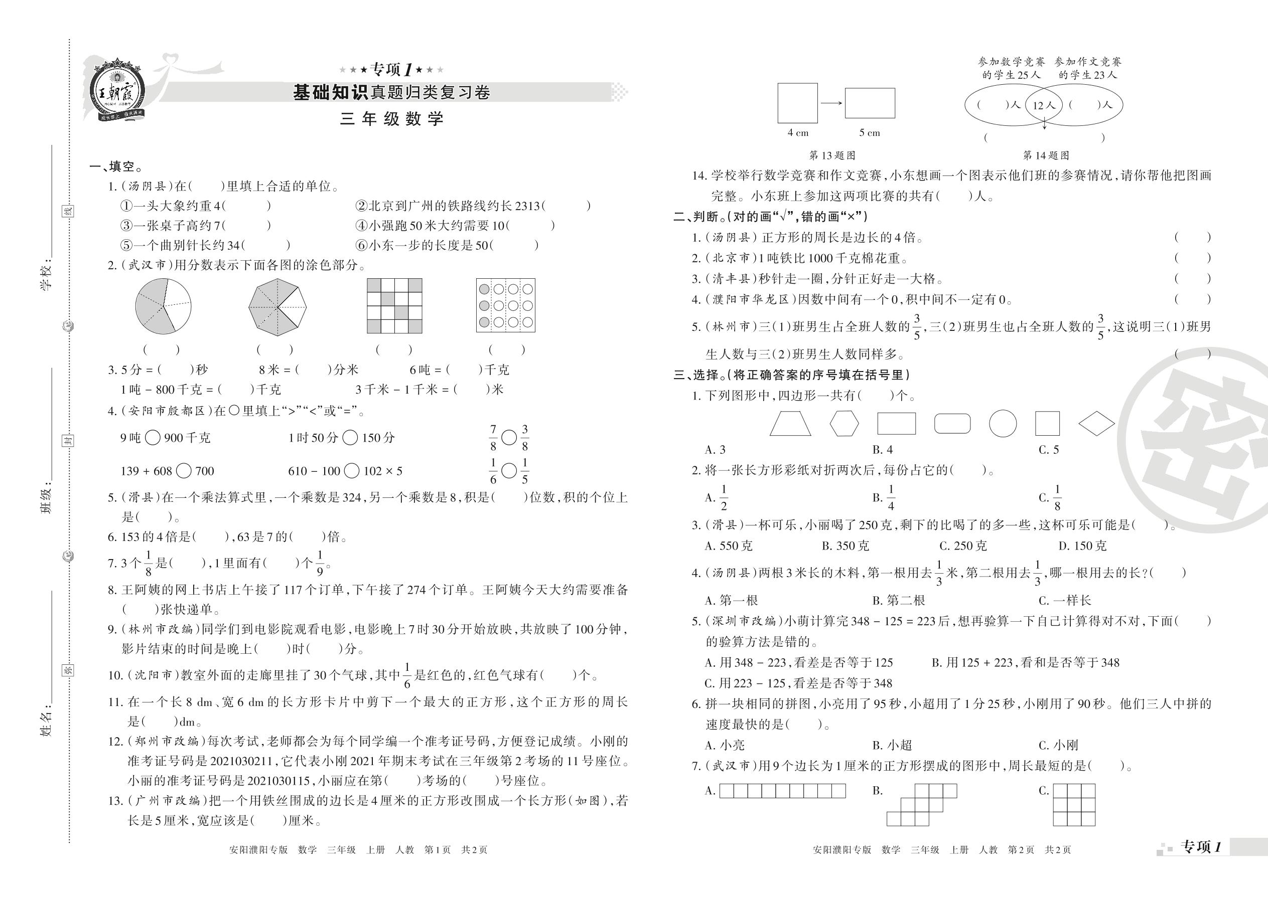 王朝霞期末专项卷——基础知识真题归类复习卷三年级上册数学(人教版)_R211124100306028【1】