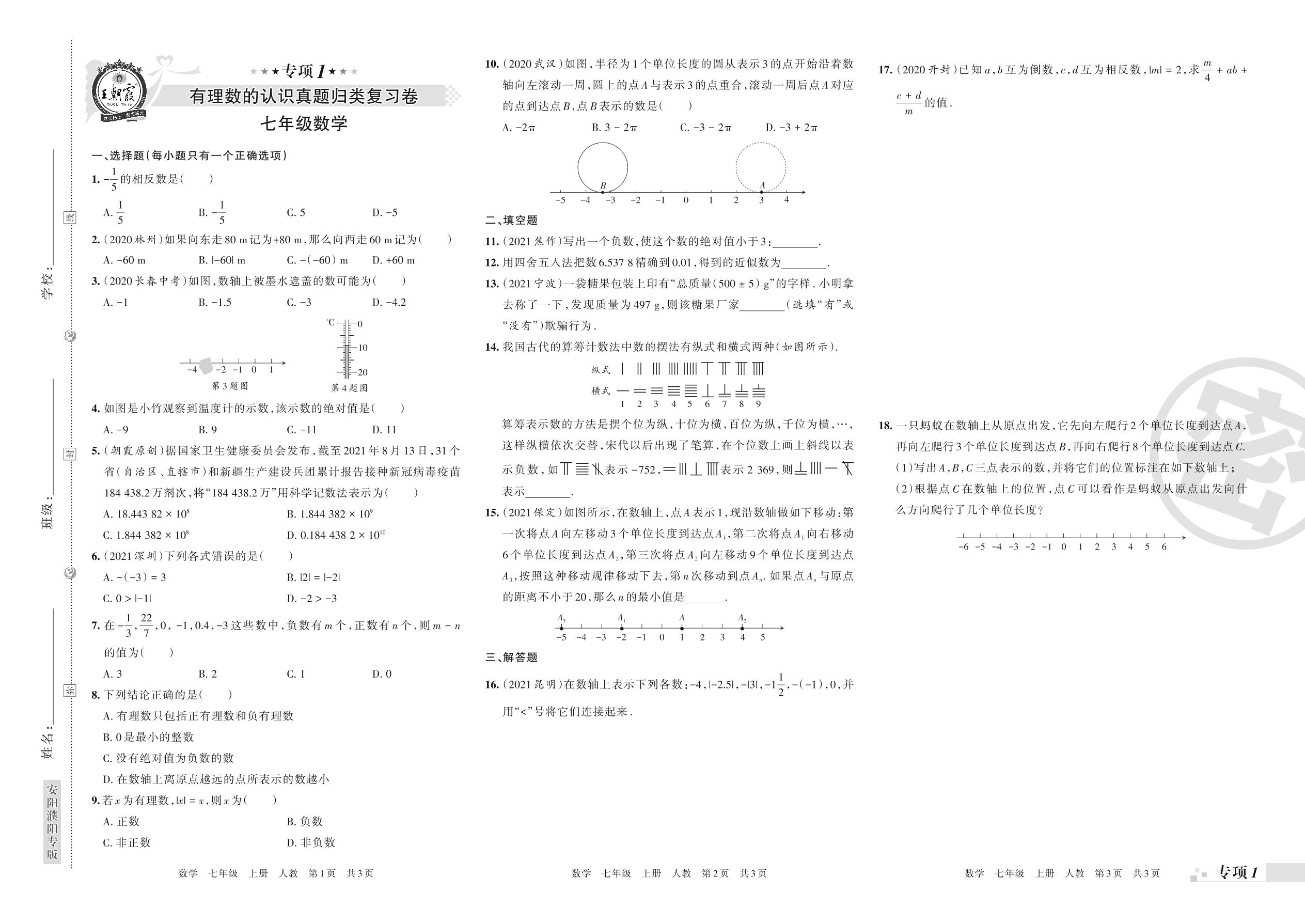 王朝霞期末专项卷——有理数的认识真题归类复习卷七年级上册数学(人教版)_R211124101818906【1】