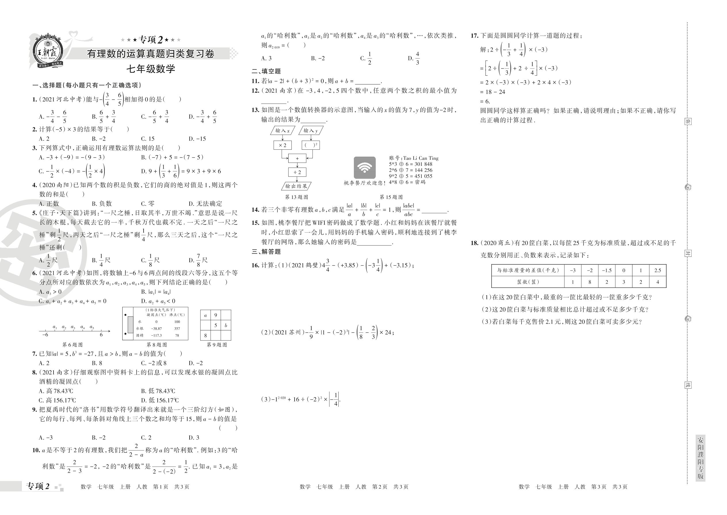 王朝霞期末专项卷——有理数的运算真题归类复习卷七年级上册数学(人教版)_R211124101818222【2】