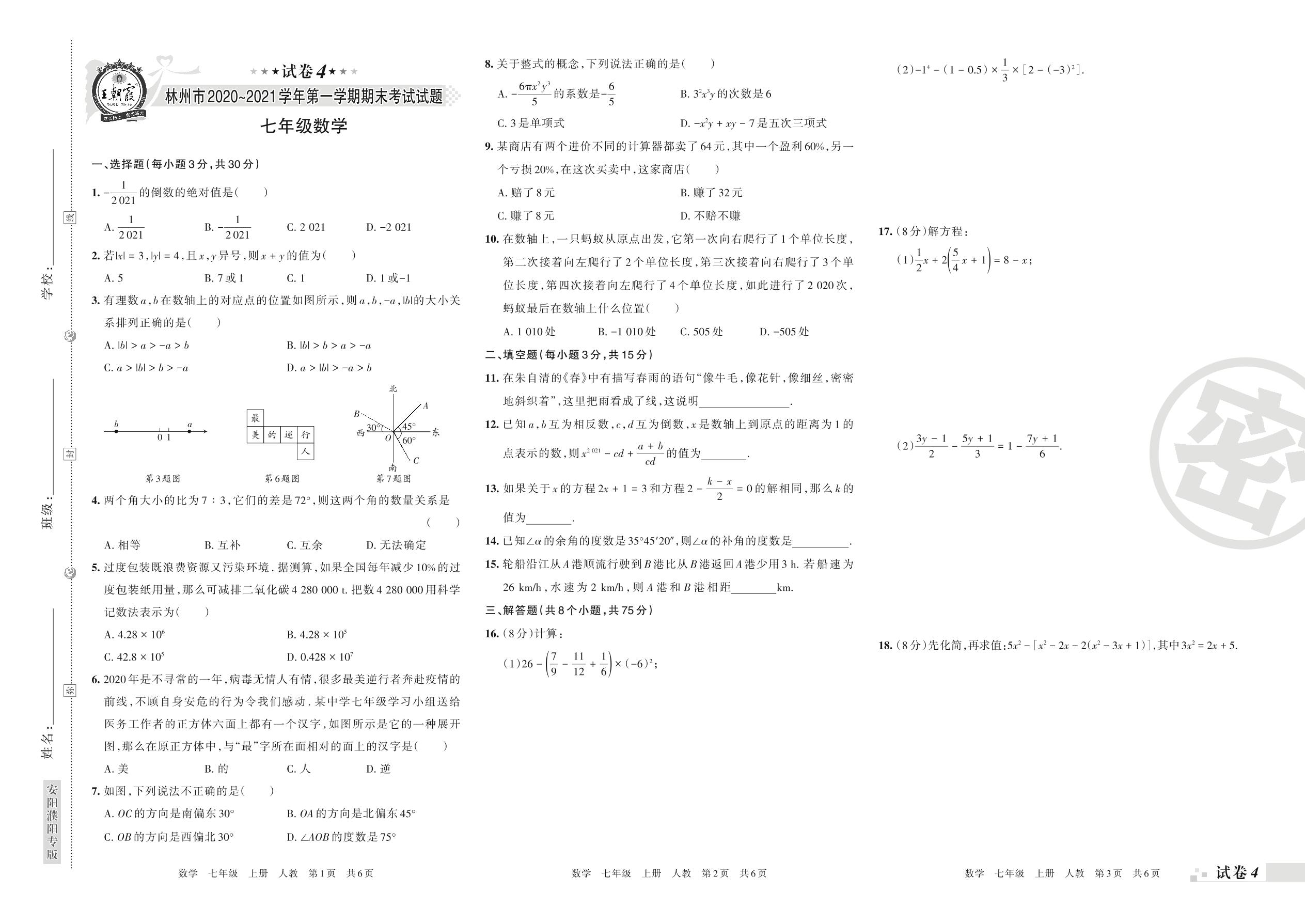 林州市2020~2021学年第一学期期末考试试题七年级数学(人教版)【4】