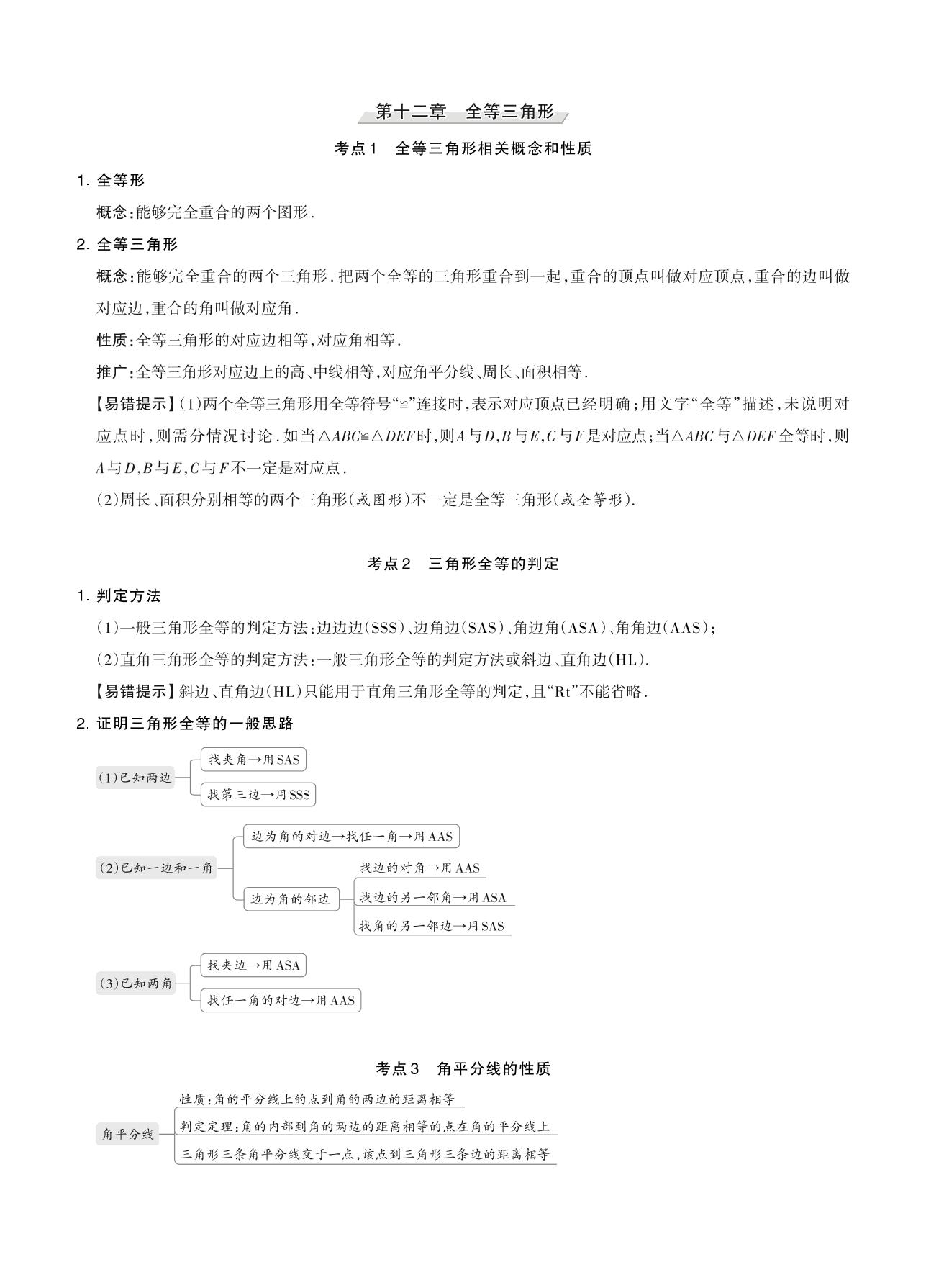 王朝霞期末知识梳理——第十二章 全等三角形八年级上册数学(人教版)【2】