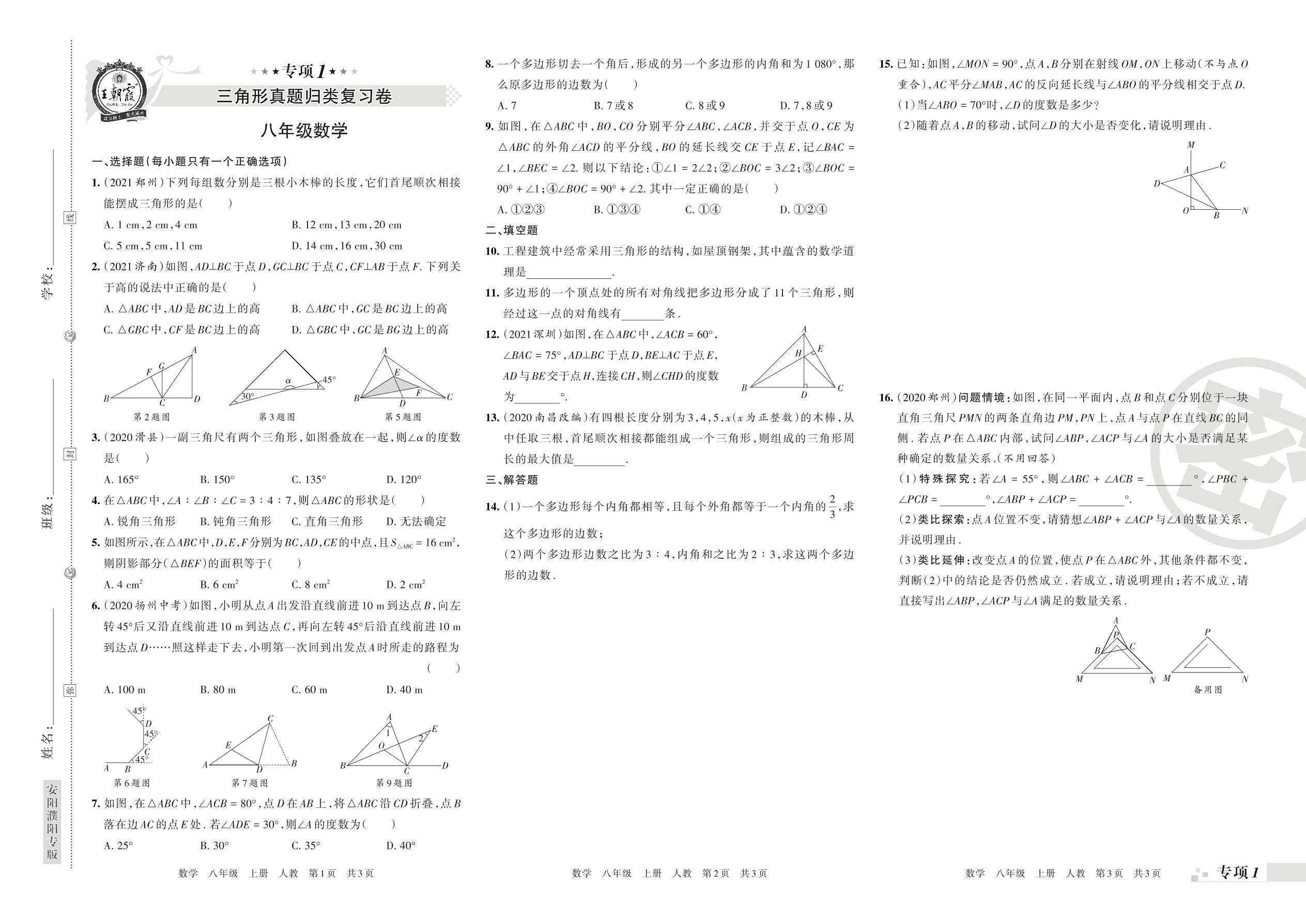 王朝霞期末专项卷——三角形真题归类复习卷八年级上册数学(人教版)_R211124102237222【1】