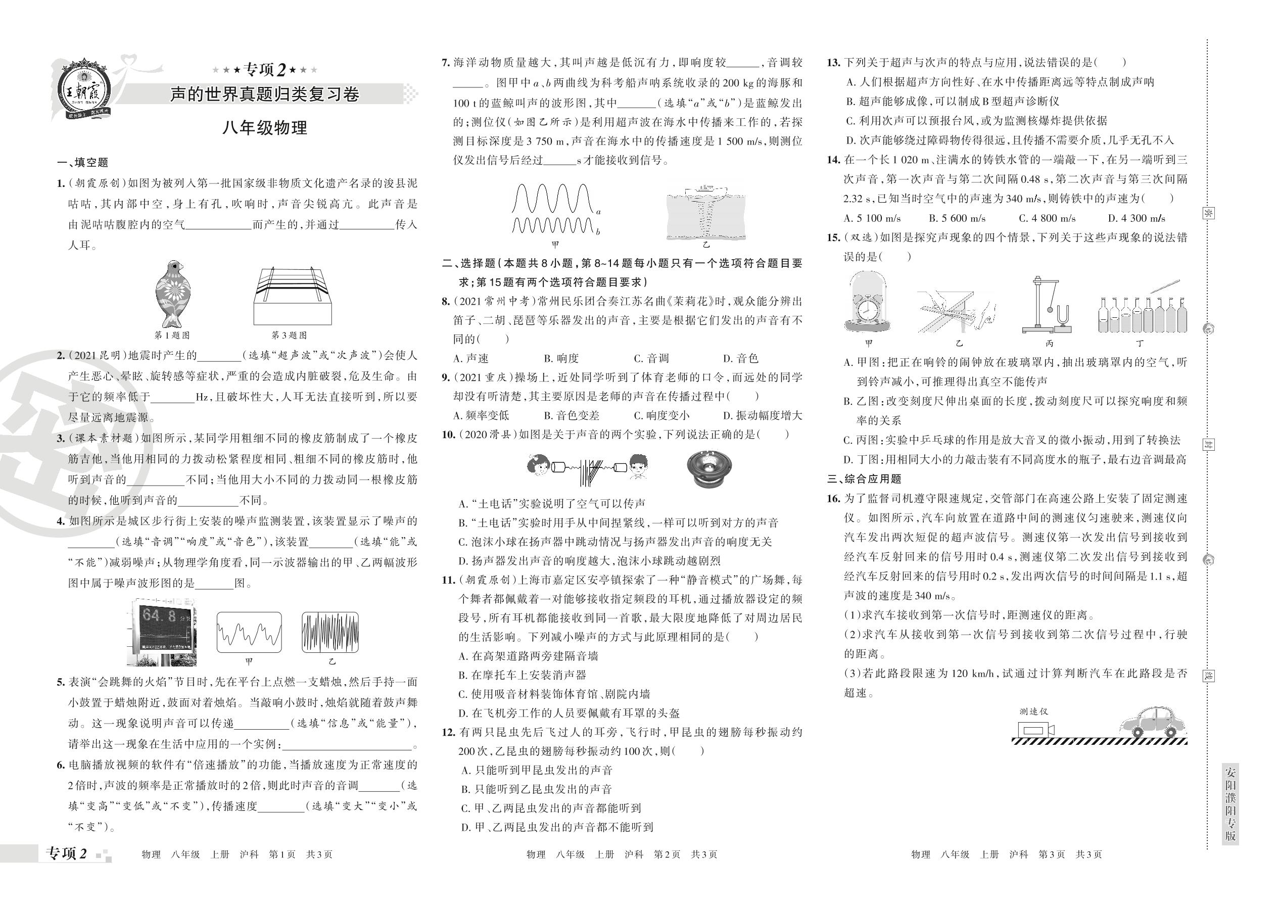 王朝霞期末专项卷——声的世界真题归类复习卷八年级上册物理(沪科版)【2】