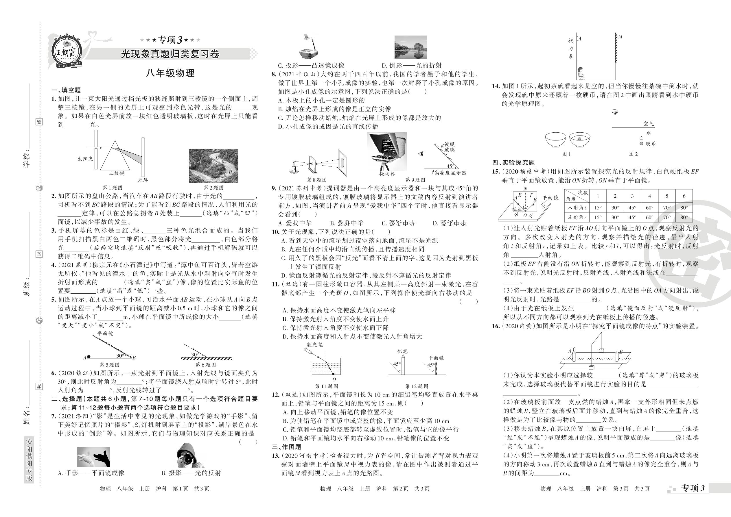 王朝霞期末专项卷——光现象真题归类复习卷八年级上册物理(沪科版)【3】