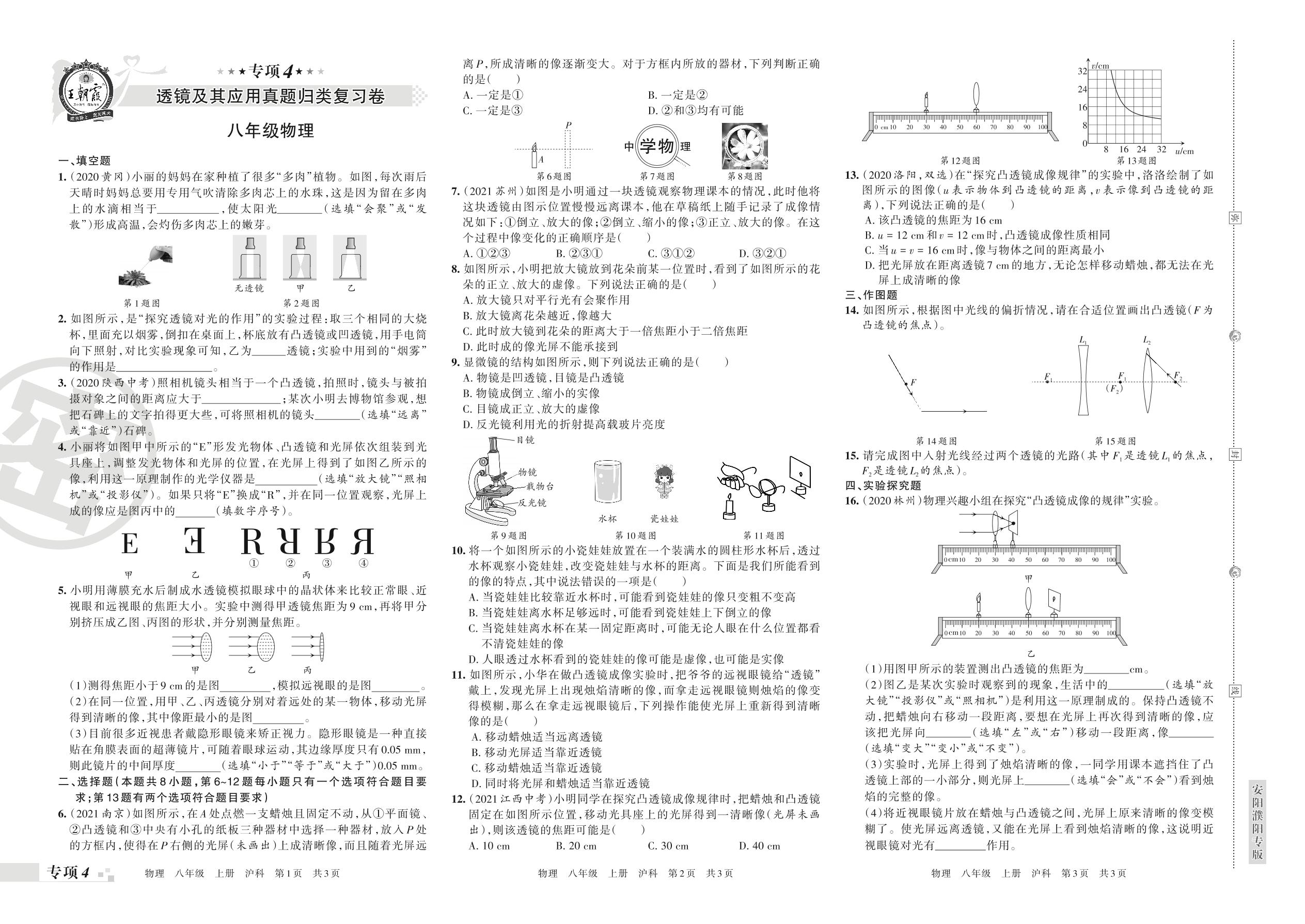 王朝霞期末专项卷——透镜及其应用真题归类复习卷八年级上册物理(沪科版)【4】