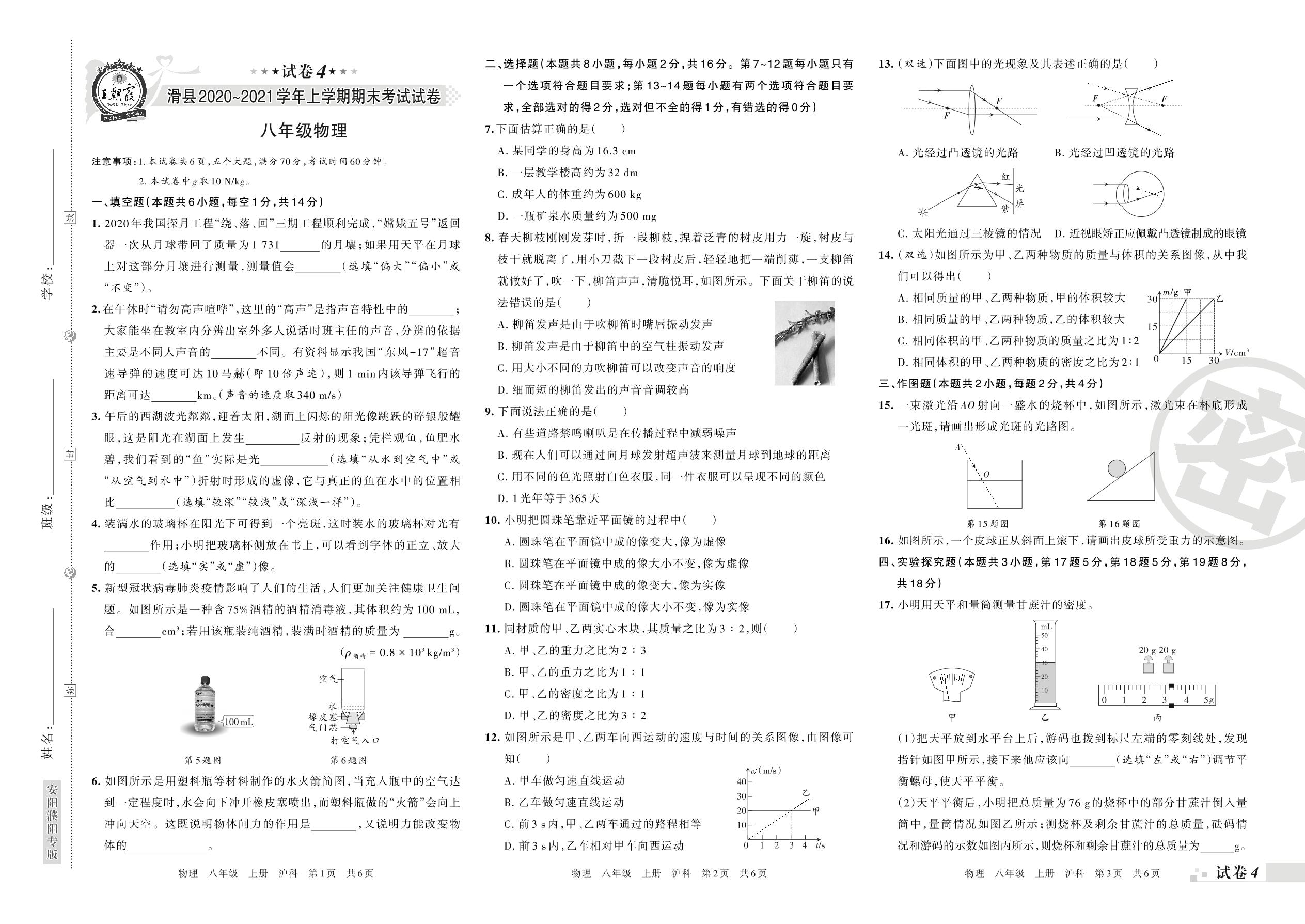 滑县2020~2021学年上学期期末考试试卷八年级物理(沪科版)【4】