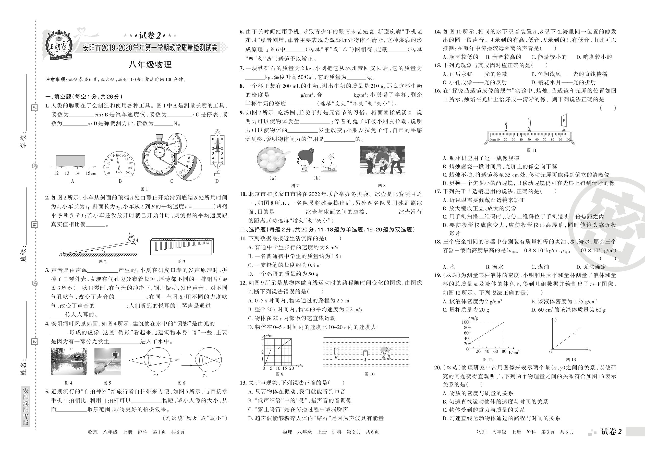 安阳市2019~2020学年第一学期教学质量检测试卷八年级物理(沪科版)【2】