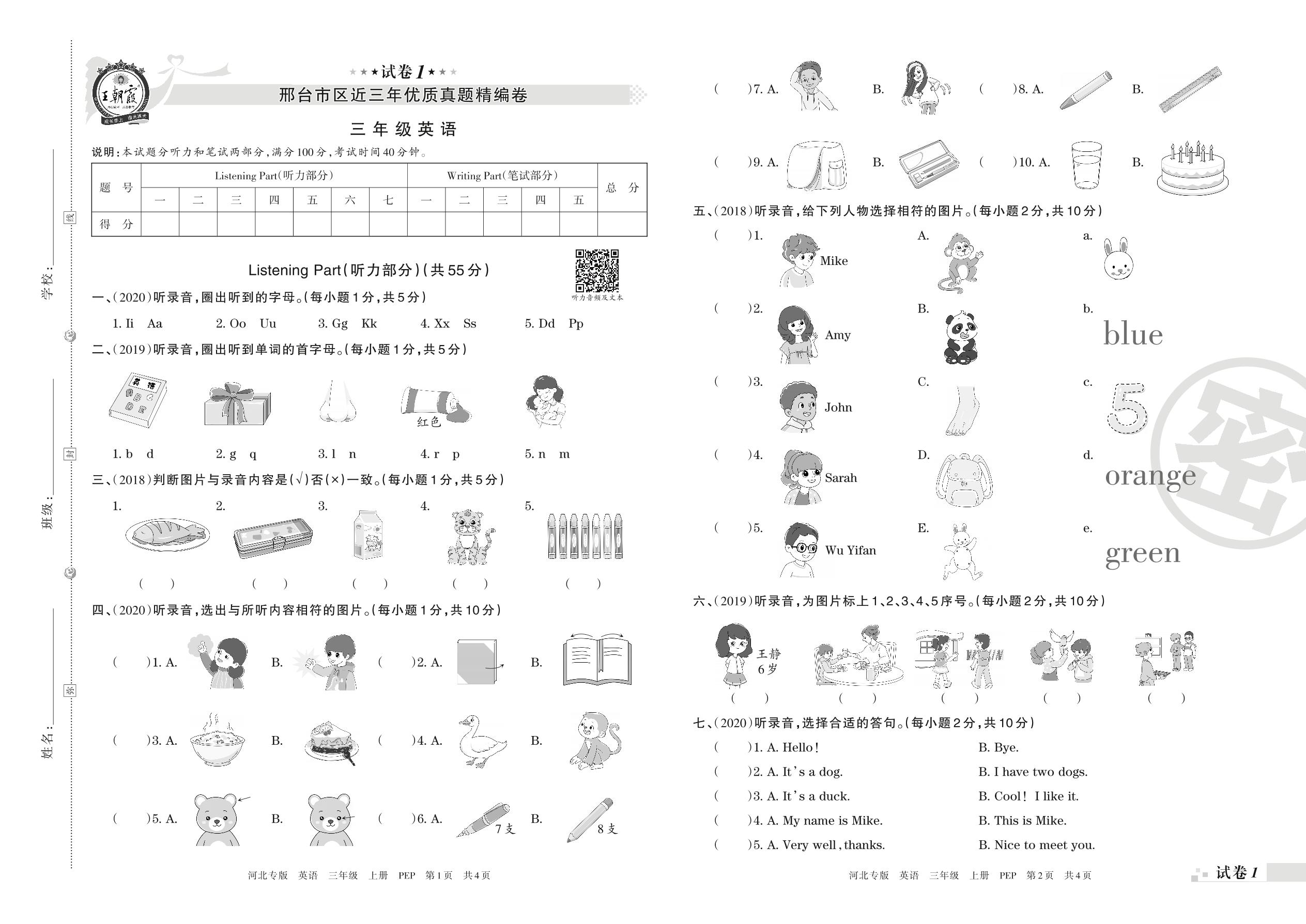邢台市区近三年优质真题精编卷三年级上册英语(人教PEP版)【1】