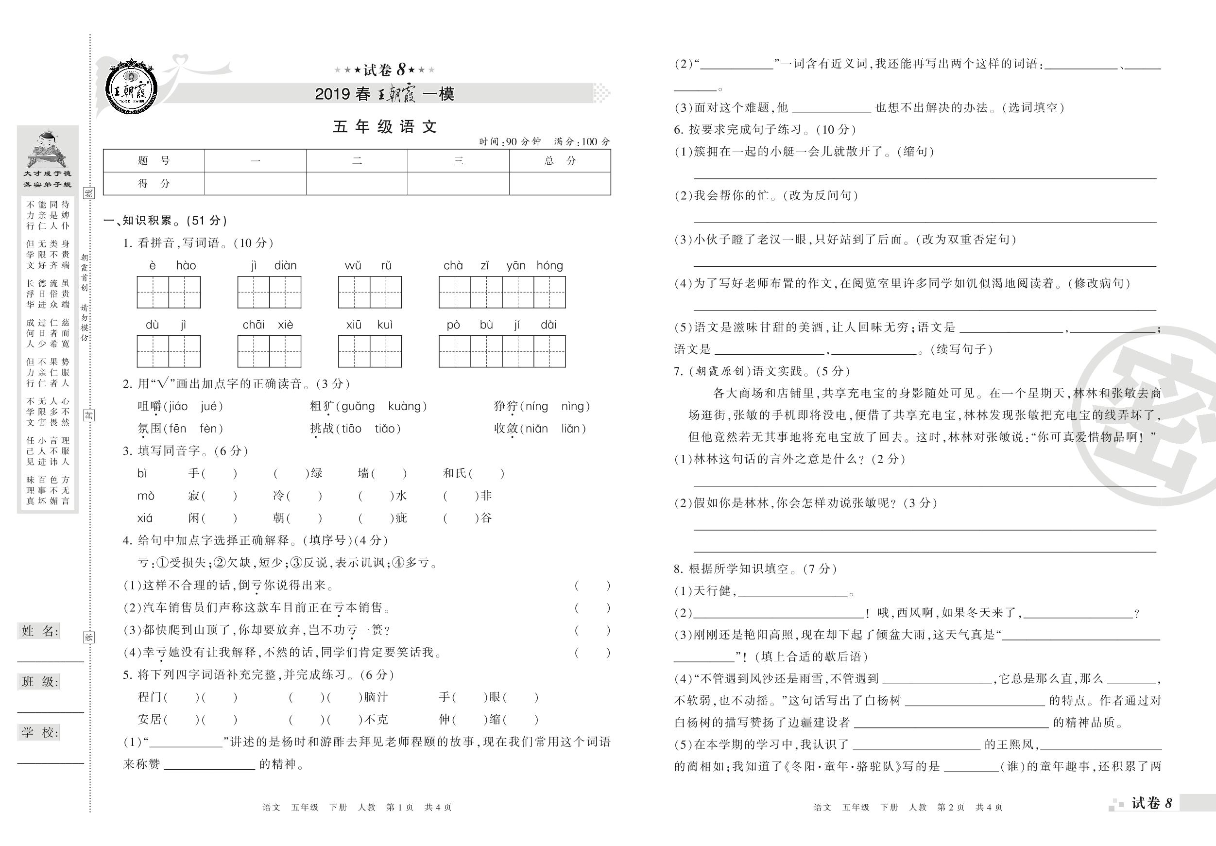 王朝霞期末模拟卷五年级下册语文(人教版)_R210801203739【8】