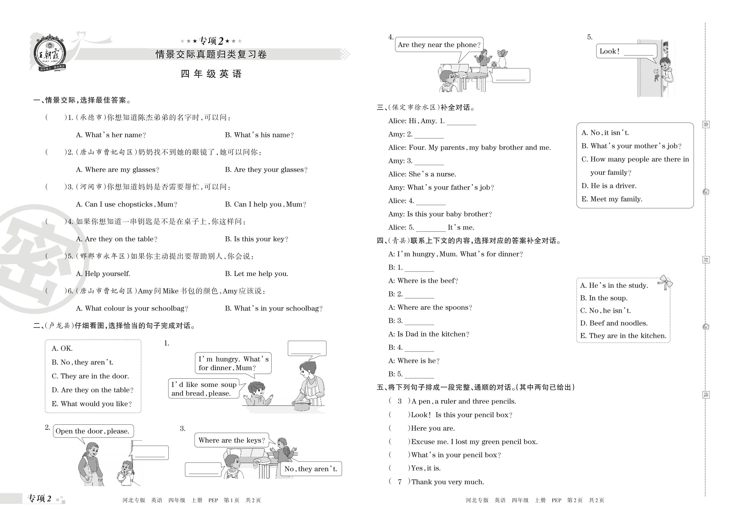 王朝霞期末专项卷——情景交际真题归类复习卷四年级上册英语(人教PEP版)_R211124105044976【2】